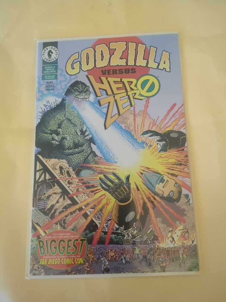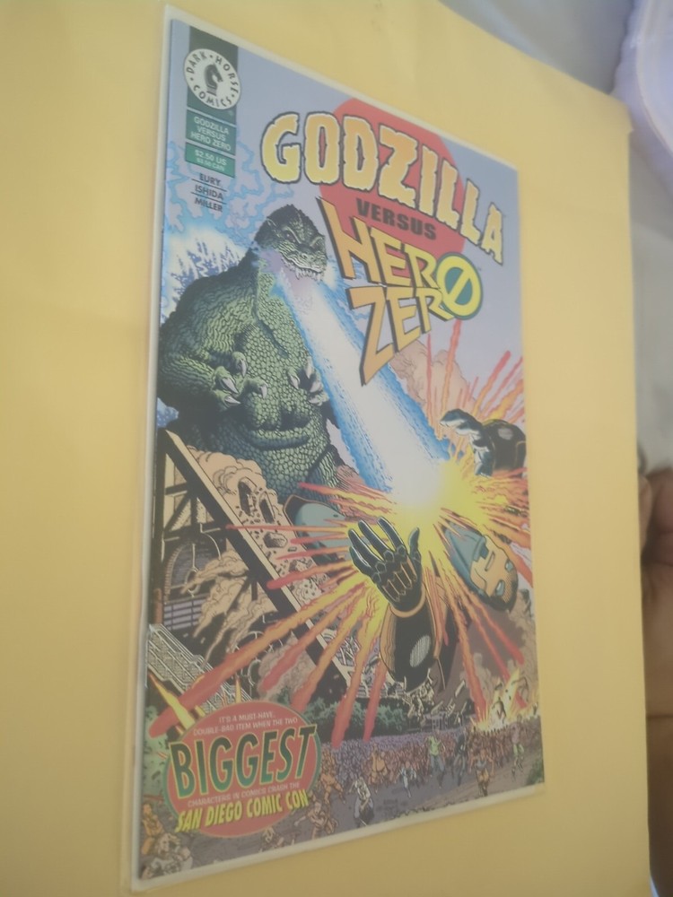 This Godzilla Versus Hero Zero #1 comic book from Dark Horse Comics is a must-have for fans of US Comics, especially those interested in vintage issues from 1995. Featuring the iconic Godzilla character, this single issue comic book is a first edition, boarded copy that is perfect for collectors. The comic book is in great shape and has been well-preserved, making it an excellent addition to any collection. This is a VG condition,clean and legible copy, the pages are all in excellent shape and all intact. The comic book is a one-shot, with features that include being a first printing and having an intended audience of general readers. The genre of the comic book is movie and TV, monster, and science fiction. This Dark Horse Comics issue is perfect for fans of Godzilla and US Comics, and is a rare find for those looking to expand their collection.