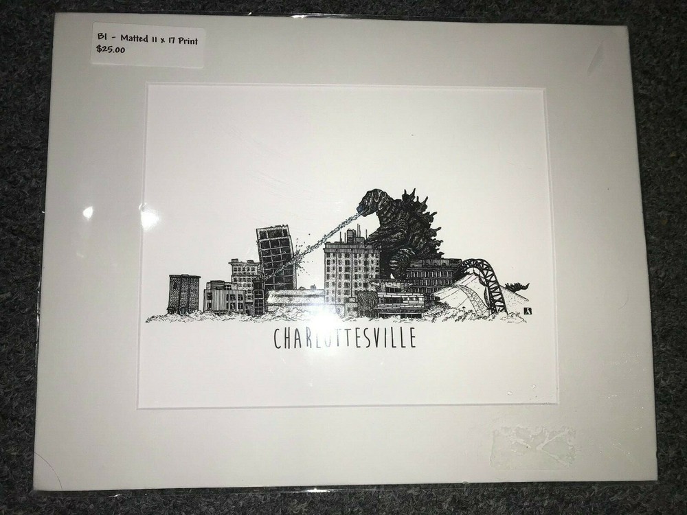 This print is a quirky and fun find! The black-and-white artwork has a cool, vintage vibe, and the Godzilla vs. Nazis theme makes it a unique conversation piece. The matting gives it a polished look, perfect for framing. Great for fans of oddball pop culture—definitely stands out!