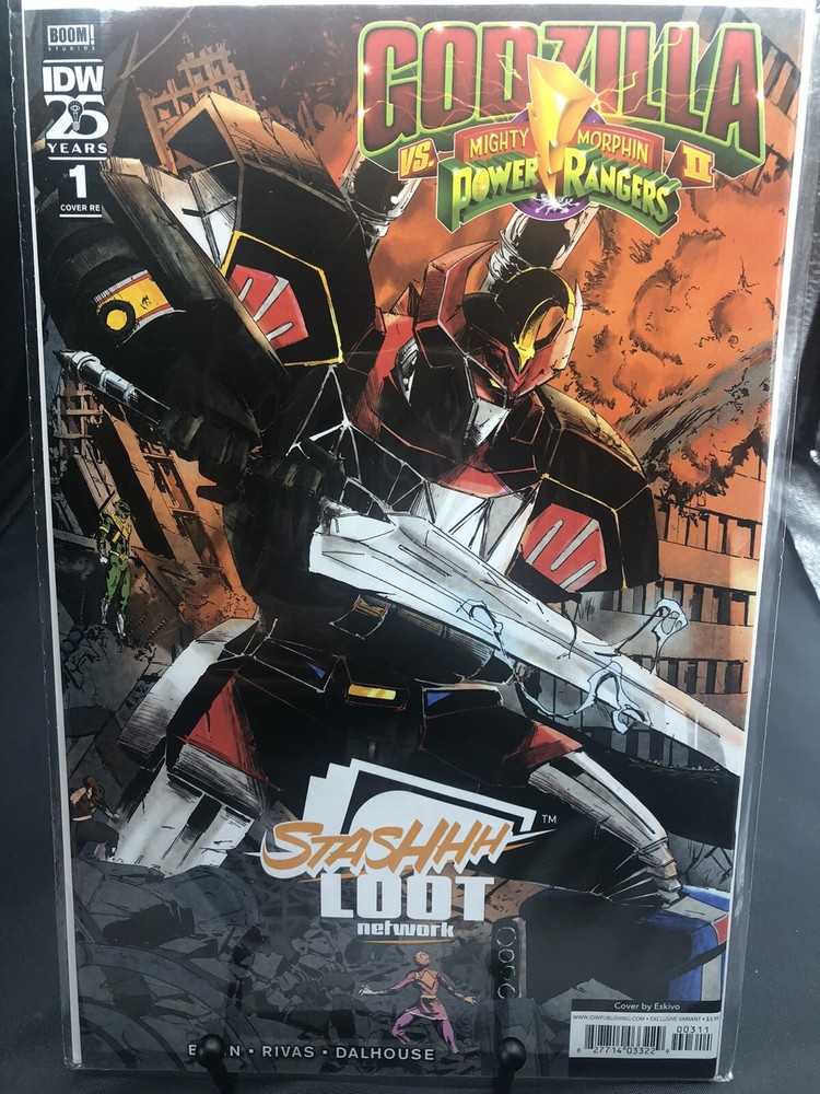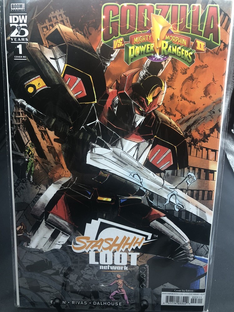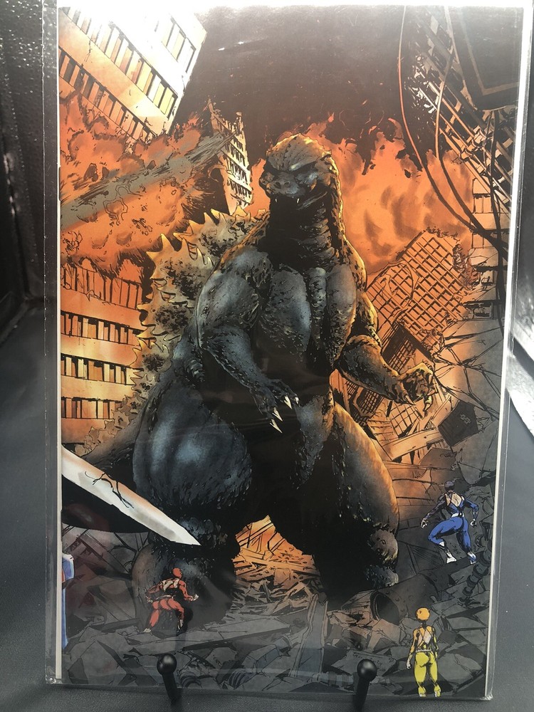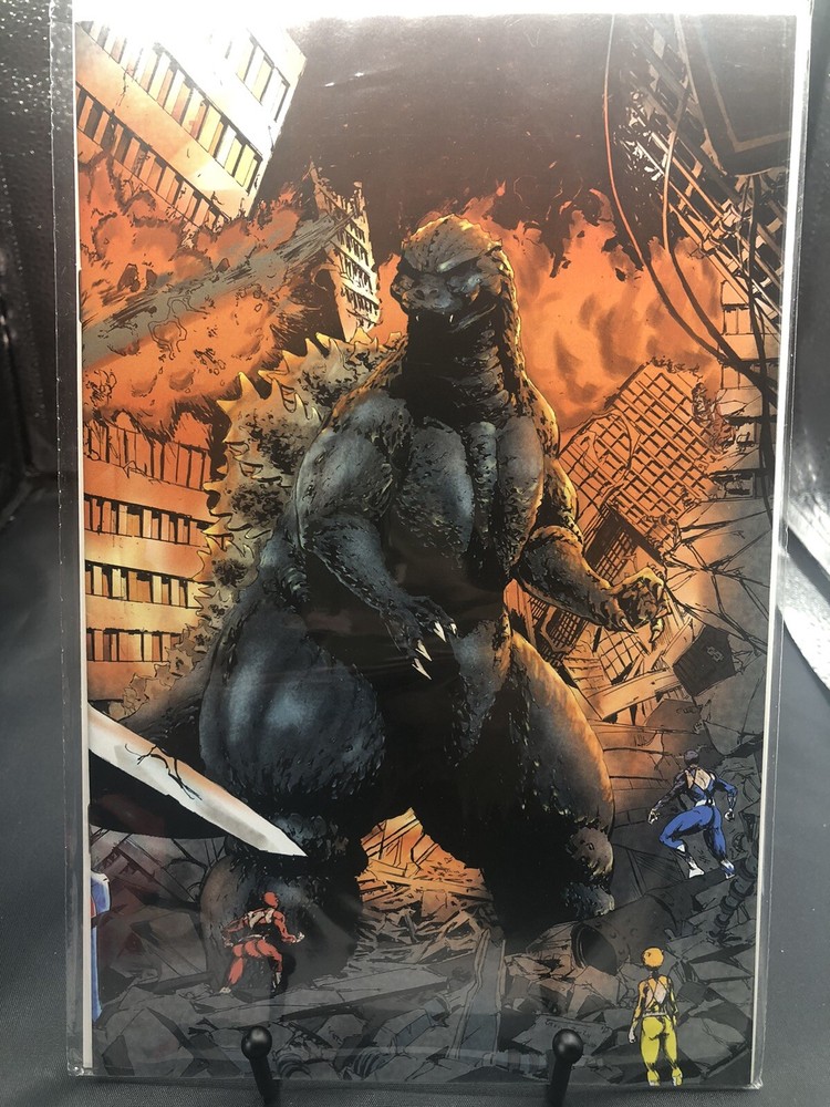 This exclusive virgin wraparound cover edition of Godzilla vs Power Rangers #1 features stunning artwork by Eskivo. Fans of both franchises will love this action-packed comic book that pits the giant lizard against the colorful superheroes. The comic is in excellent condition and has been stored in a protective sleeve since purchase. The issue number is #1 and it falls under the Collectibles, Comic Books & Memorabilia, Comics, and Comics & Graphic Novels categories. It features characters from the Power Rangers universe and Godzilla, making it a must-have for fans of either franchise. Don't miss out on the opportunity to own this rare and exciting comic book.