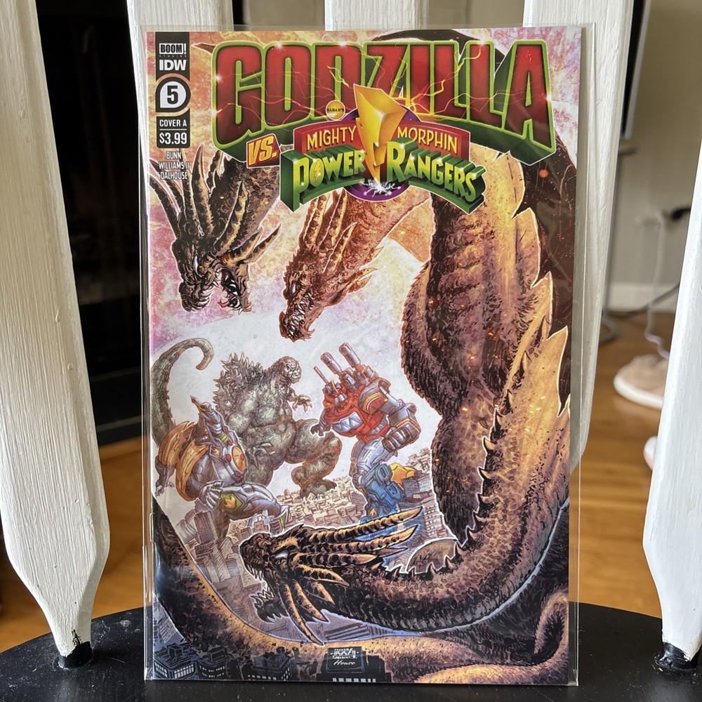 The product is a comic book titled "GODZILLA VS THE MIGHTY MORPHIN POWER RANGERS #5 2022 NM COVER A" published by IDW Publishing in 2022. The comic features the popular characters Godzilla and the Mighty Morphin Power Rangers, making it a must-have for fans of both franchises. With a near mint grade of 9.4, this comic is a valuable addition to any collector's library.