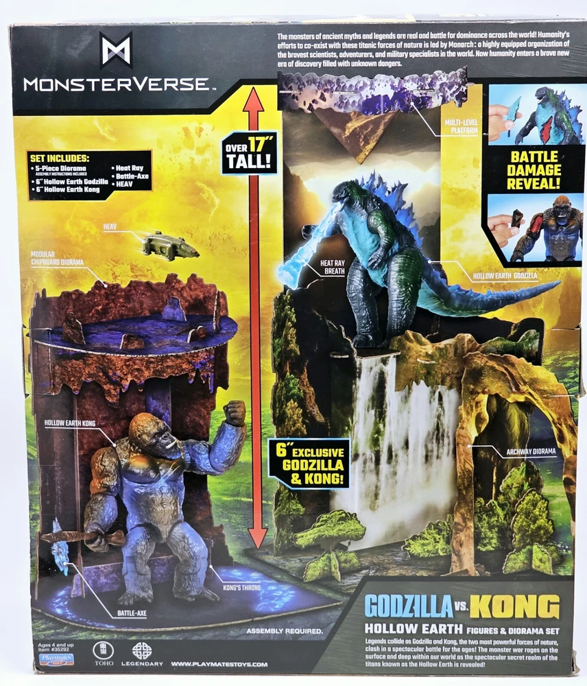 The "GODZILLA Vs. KONG Hollow Earth 6" Figures & 5-Piece Diorama MonsterVerse Sealed" product features a 6-inch tall action figure of Godzilla from the Godzilla vs. Kong movie, part of the MonsterVerse franchise. The action figure is designed by Playmates Toys and comes in a boxed packaging. Additionally, the set includes a 5-piece diorama themed around the Hollow Earth, providing a detailed and immersive display for fans of the Godzilla franchise. This collection is a must-have for collectors and fans of action figures, comics, and the Godzilla series.