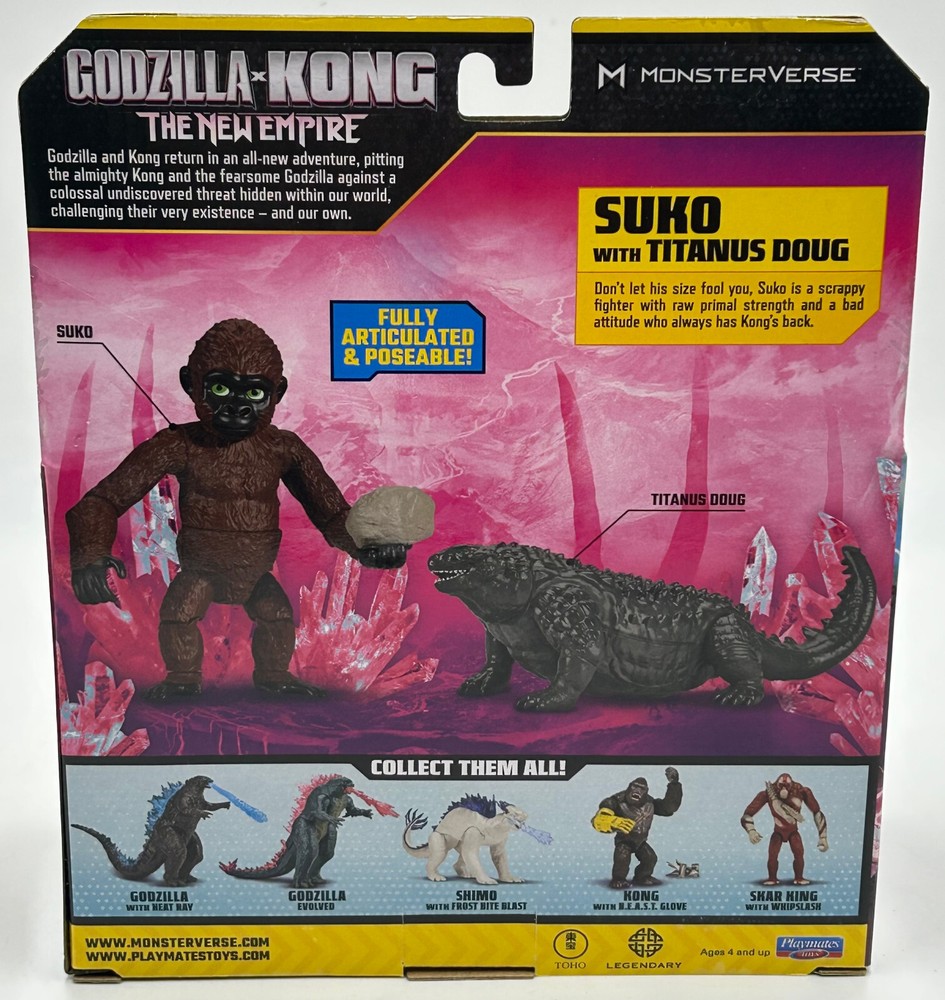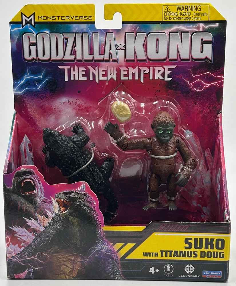 GODZILLA X KONG THE NEW EMPIRE SUKO WITH TITANUS DOUG PLAYMATES FIGURE NIB 2024. NIB AND NEVER OPENED, BOX IS NOT MINT AND MAY HAVE EDGE WEAR, WEAR, CORNER DINGS, CREASING, ETC....