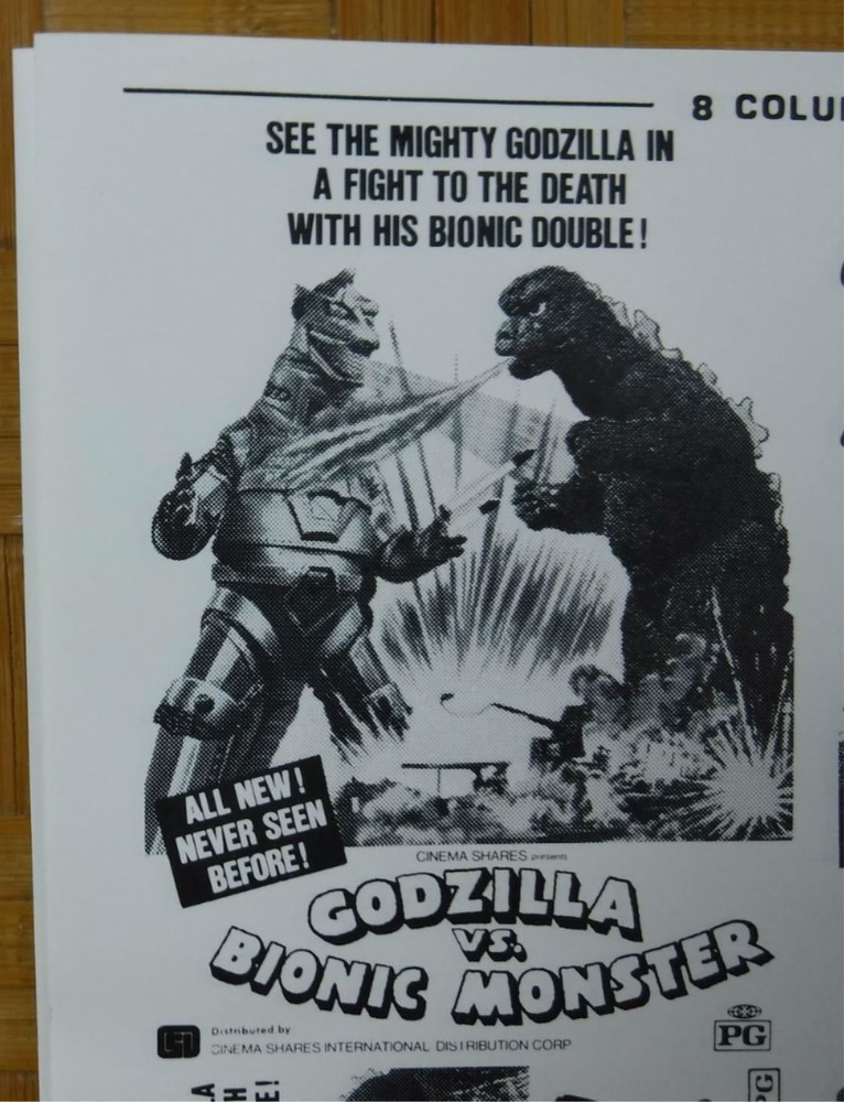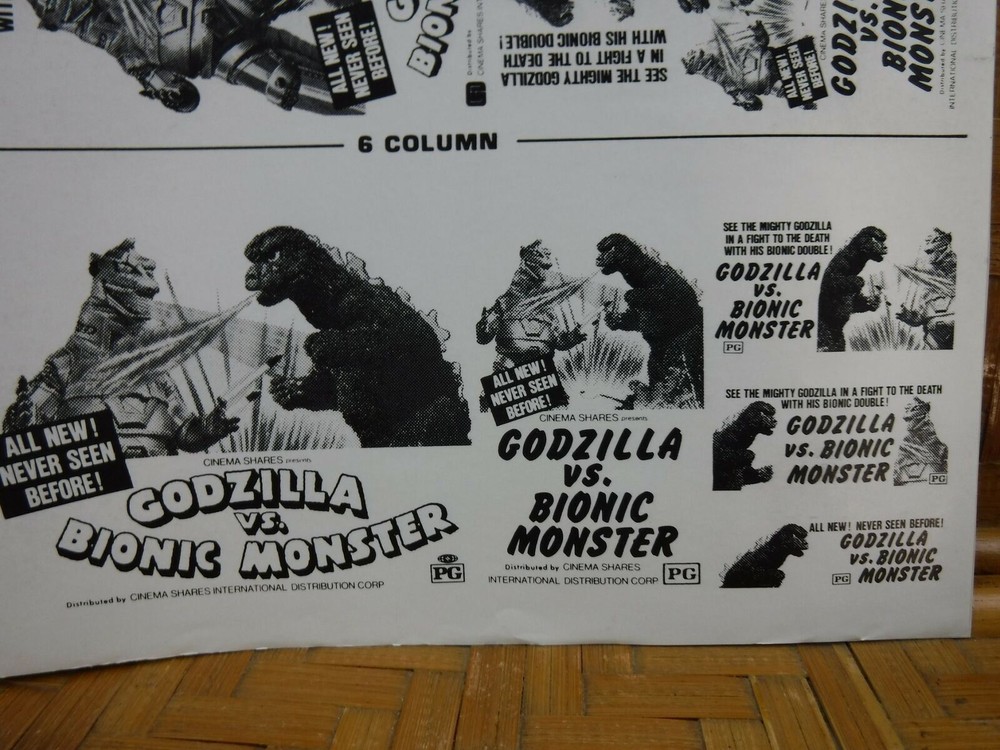 GODZILLA vs BIONIC MONSTER Movie Mini Ad Sheet VTG Advertising Poster Clip Art GODZILLA vs BIONIC MONSTER Movie Mini Ad Sheet VTG Advertising Poster Clip Art GODZILLA vs BIONIC MONSTER Original Movie Promo Mini Ad Sheet These Were Used By Movie Theater Owners To Place An Ad In Local Newspapers Clip-Art I Will Be Listing More From The Same Time Period #638