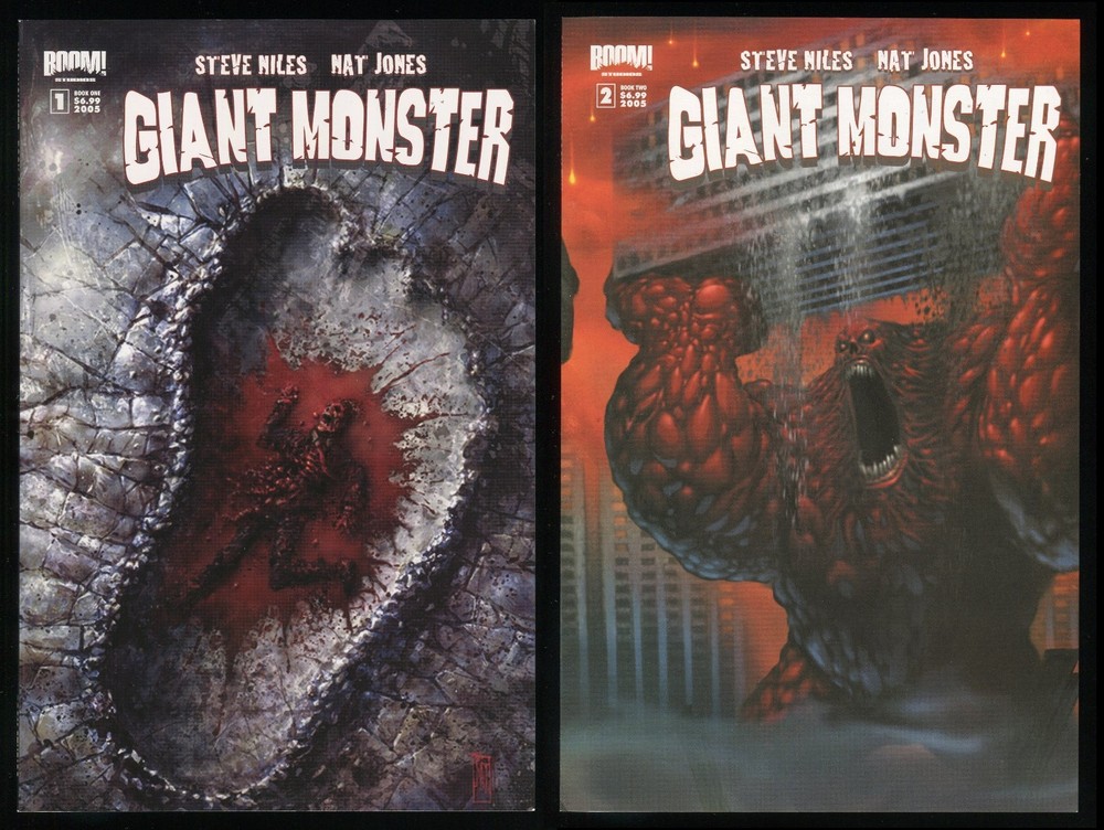 Giant Monster Comics Lot Writer: Steve Niles Artist: Nat Jones Colorist: Jay Fotos Letterer: Ed Dukeshire Editor: Ross Richie All Covers by: Nat Jones A tale about an astronaut who brings something nasty back to Earth... and a giant monster that goes on a rampage. If you love Godzilla, Gamera, Pacific Rim, and the old "Giant Monster" Sci-Fi movies of old then you will love Giant Monster. Steve Niles adheres faithfully to the relatively simple giant, rampaging monster formula seen in countless Godzilla movies and Nat Jones provides some vivid and gruesome "Giant Monster" art that’s sure to please! Story/Spoilers: In issue # 1, The year is 2013. Astronaut Don Maggert's first solo manned space flight has him disappear in the grip of an intergalactic horror. Returning to earth, he's been transformed into something that will throw the entire planet into peril! Featuring oversized Kaiji action and giant monster throw-downs! Finally, in issue # 2, Maggert is fully transformed now, and the nation's military can't stop him. The world's only hope seems to rest in... a buried Nazi robot? And will Maggert's wife be able to talk him out of his massive rampage? Comics lot contains: Giant Monster (2005) Issues #1-2. Boom! Studios Comics are bagged & boarded and will be carefully / securely packaged then shipped via USPS Priority Mail to insure that it arrives to you perfectly and quickly. First Printing Publication Date: 2005 Format per comic: FC, 32 pages, Comic, 10.25" x 6.5" ISBN: None Stated Collectible Entertainment note: Comics 1,2, are New & Unread. Very Fine to Very Fine + condition. Beautiful Set!!! Please See Scans!! A must have for any serious Horror and/or Giant Monster (like Godzilla) collector / enthusiasts. A fun & entertaining read. Recommended!! Please read return policy. Please check out all my other Mass Effect or Invasion or Mars Attacks or War of the Worlds or Planet of the Apes or Starship Troopers or Thing or Robocop or Aliens or Predator or Terminator listings by visiting my store and typing Mass Effect or Invasion or Mars Attacks or War of the Worlds or Planet of the Apes or Starship Troopers or Thing or Robocop or Aliens or Predator or Terminator in the store search engine. Track Page Views With Auctiva's FREE Counter