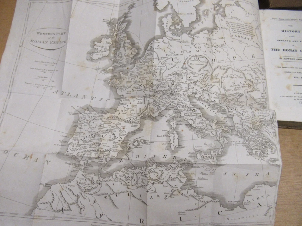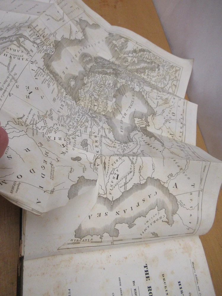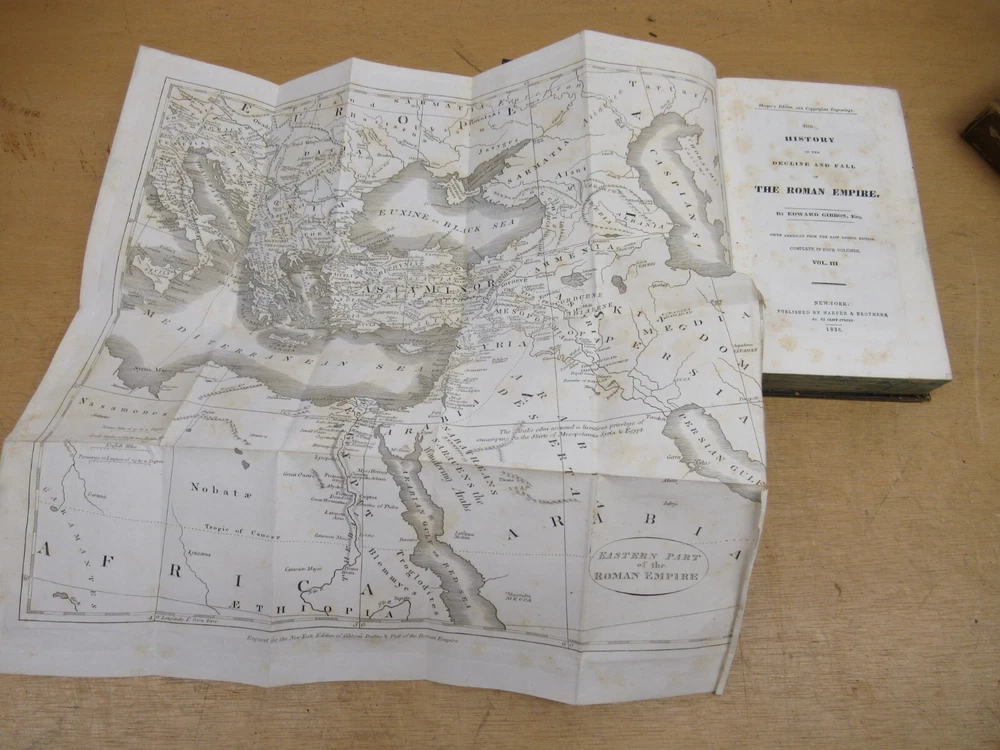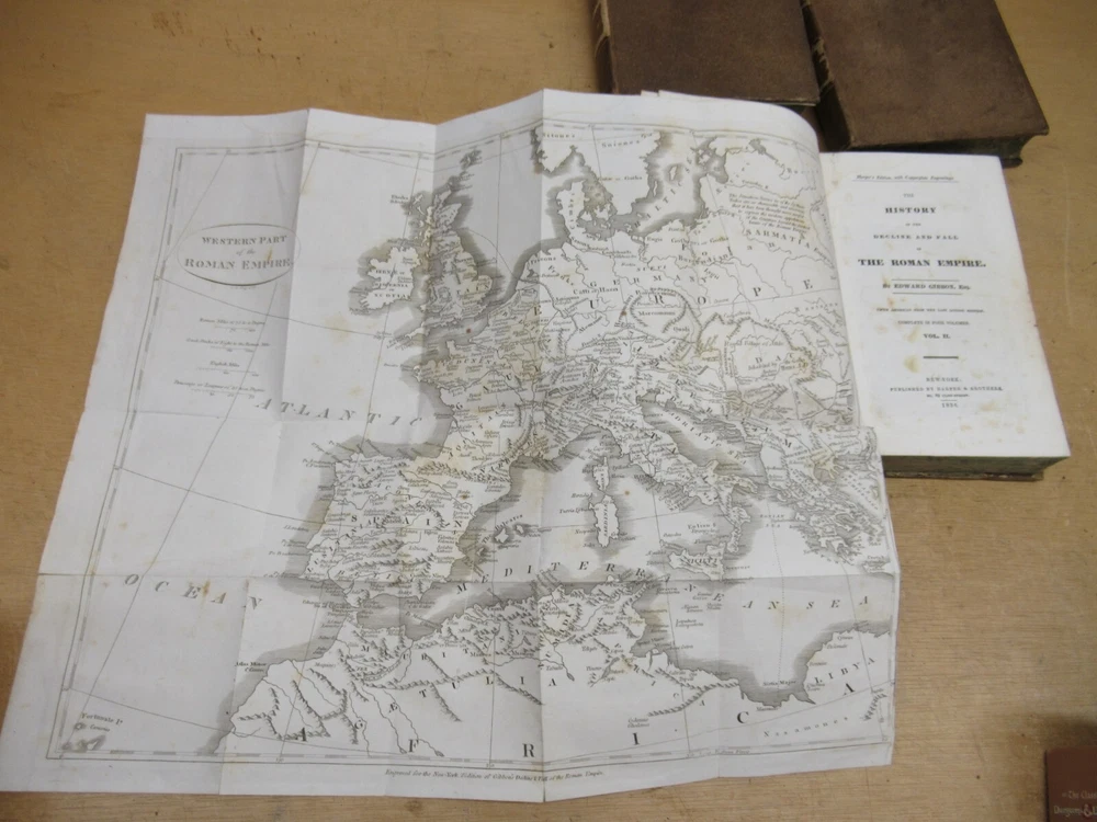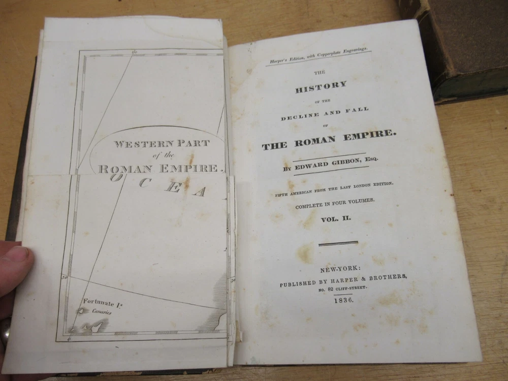 Ryan's Relics Auctions This auction is for an estate found Gibson's Rome 1836 Vol 2 3 4 Antique Leather Bound Books. Vol 2 and 3 have fold out maps. Books 9"x6" Published by Harper Brothers, NY 1836. Map on Vol 3 has a tear. A lot of the pages have some foxing and spotting. Some wear mostly on the spines. We are a local family-run Baltimore estate liquidation company, and currently have 2 retail stores. Our business offers a wide variety of new, used, vintage, and antique items and furniture. As with most vintage and antique items, there may be some wear consistent with age and use. We do our best to accurately describe and photograph our items and take note of any wear or damage we can see. If you have any specific questions about the item or it's condition, please contact us and we will do the best we can to reply in a timely manner. For most items, we will not end the auction early for offers; we would prefer to let them run and bring what they will. All items sold as-is, all sales final! Please use shipping calculator to determine shipping. Our items are shipped from 21236 in Baltimore, MD. Tracking and insurance is included in the shipping price unless otherwise noted. Local pickups are always welcome and free. THANKS FOR LOOKING!! Items are typically shipped within 48 hours of cleared payment. We accept PayPal, Visa, MasterCard, and Discover. If you have purchased an item and you'd like to pay with a credit card instead of PayPal, please contact us for instructions. An unpaid item case will be opened for items after several days without payment or a message. If you have additional questions, please ask before bidding. Maryland residents must pay 6% sales tax. HAPPY BIDDING!!!! Check out our other items!