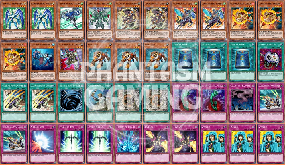 Deck Name: Glad Beast (B) (Edison) # Main Deck (40) 2 - Elemental HERO Prisma 1 - Elemental HERO Stratos 1 - Gladiator Beast Bestiari 2 - Gladiator Beast Darius 2 - Gladiator Beast Equeste 3 - Gladiator Beast Laquari 1 - Gladiator Beast Murmillo 1 - Gladiator Beast Samnite 3 - Test Tiger 3 - Book of Moon 1 - Enemy Controller 2 - Gladiator Proving Ground 1 - Mystical Space Typhoon 1 - Reinforcement of the Army 2 - Shrink 2 - Bottomless Trap Hole 1 - Call of the Haunted 2 - Gladiator Beast War Chariot 1 - Mirror Force 2 - Starlight Road 1 - Torrential Tribute 2 - Trap Stun 3 - Waboku You will receive all of the following cards listed above. Most cards will will be in near mint condition. In the case of certain older cards we will do our best but some cards may be light or even moderatly played in extreme condtions. Those conditions being the card has not been reprinted in a number of years and con no longer be easily purchased in light or near mint condition. Set, Rarity, and Edition will vary and cannot be special requested. These lists are constructed with least expensive rarities we have available in stock. All cards are play legal copies. Note: If purchasing a Yugioh Deck all Speed duel cards are 100% legal at all levels of play. Store Policies Here at PMG_LLC , we pride ourselves on having the best customer service around. If you have any questions or can't seem to find something that you want please do not hesitate to contact us. We will do our best to respond to all questions within one business day. Hours of Operation: Monday-Friday: 2:30pm - 10:00pm Saturday- 10:00am - 8:00pm Sunday 11:00am - 5:30pm Note: We are closed all national holidays. Info: Thank you for choosing PMG_LLC . We appreciate your business. We ship Monday through Friday to make sure you get your deck as quickly as possible. All orders priority orders can use combined shipping. In order to use the combined shipping your whole purchase needs to be checked out as one order. We ship once we have received your payment and payment has cleared. As always if you have any questions or concerns please feel free to contact us via email. Shipping Information: We ship Monday through Friday, barring national holidays during which the United States Postal Service is closed. If you purchase a card on Friday or Saturday please bear in mind it will not ship until Monday. US Shipping: First Class Mail : Free. Comes with tracking information. Priority Mail with Delivery Confirmation : $9.99 All orders are shipped in appropriate protective material inside bubble mailers. International Shipping: We do not offer international Shipping Return Policy: You must return items sold and fulfilled by PMG_LLC within 30 days of delivery to be eligible for a refund. Returns which are damaged in the mail due to improper return packaging will receive partial refunds. We will process a full refund for all items returned in their original condition. In order for us to process your full refund you must include the full name associated with the order as well as the eBay order number inside the return packaging. We will not process returns which do not include the buyer's name and order number. Requirements: Please return items with the original plastic packaging. Failure to do so may result in a partial refund. Also you must inform us of any returns you may wish to process before sending them back. Any items simply send back to us without prior contact will not be eligible for refunds. Important Notes Remember that to benefit from our domestic combined shipping on priority orders you must to pay in a single payment. If you place two separate priority orders you will be charged the $7.50 shipping fee for both orders. If you place multiple orders for Priority shipping you will be charged the corresponding shipping costs for each order, even if you place the orders on the same day. We do not refund shipping costs as we tend to package orders throughout the day and may not notice that you would otherwise have qualified for combined shipping. We want to provide you with 5 Star service and earn your Positive Feedback, so if for any reason you are not happy with your transaction, contact us before leaving feedback. Business Day - Our business day runs from Monday to Friday from 9am to 4pm, excluding US national holidays. Any orders placed or payments cleared less than 4 hours before the close of business will be considered orders from the following business day.