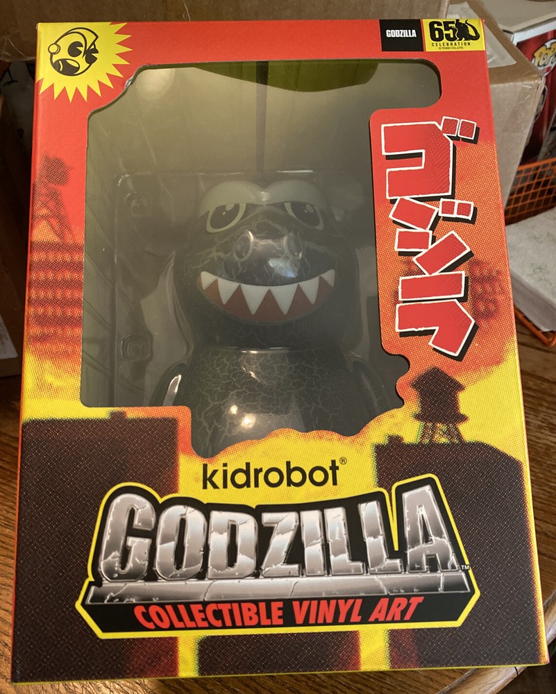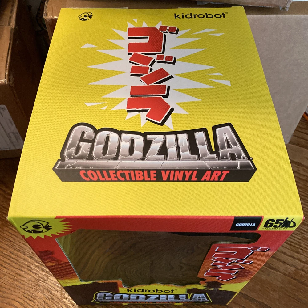 Glow in the Dark Godzilla 1954 8-Inch Art Statue. Condition is New. Shipped with USPS Priority Mail. The King of the Monsters is ready to turn your city to mulch! This 8-inch art figure is a classic rendition of GODZILLA, complete with a crackled-skin finish that would be the envy of any fashion-minded, city-stomping nuclear lizard. This limited edition vinyl Godzilla figure features glow-in-the-dark accents that make this a must-have piece. Whether you put him on a shelf or lock him in a crate that you toss into the ocean for a thousand years, this piece is essential for any serious Godzilla fan or Kidrobot collector.
