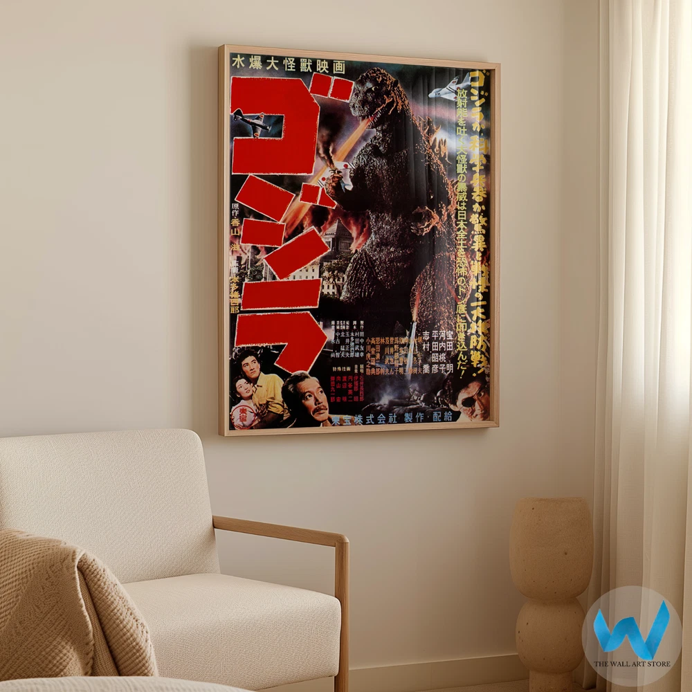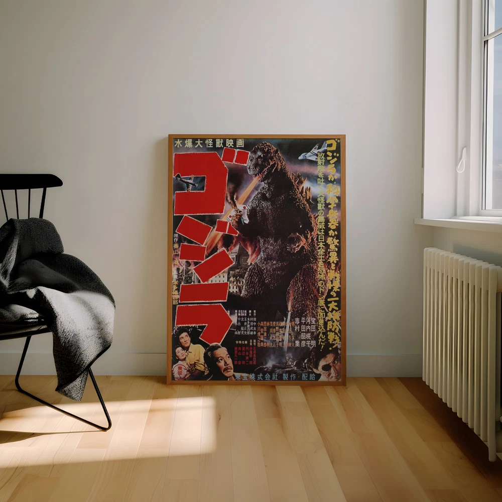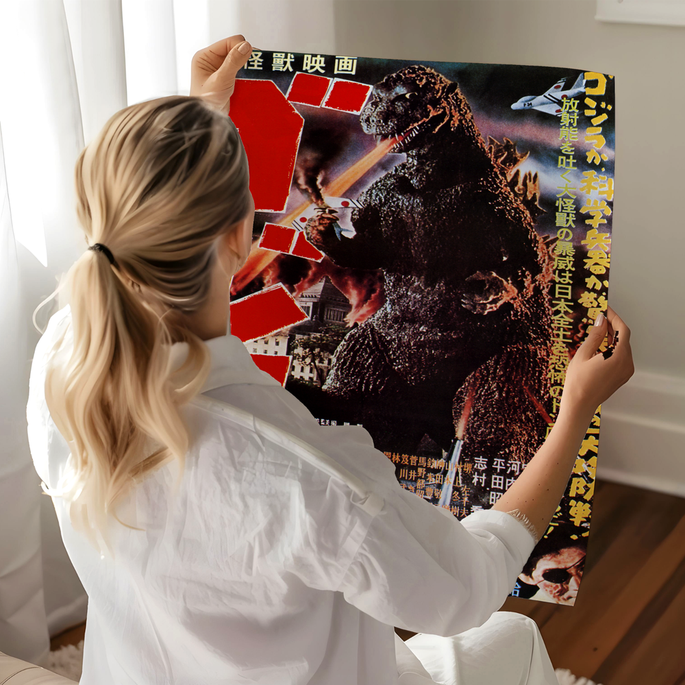 This classic Godzilla poster is a must-have for any kaiju fan! The vintage Japanese artwork perfectly captures the raw power and terror of the original 1954 film. The high-quality print brings the iconic imagery to life with stunning clarity, making it a fantastic addition to any movie lover's wall. Available in multiple sizes to fit any space, this poster instantly elevates your decor with a bold, nostalgic statement. Whether you're a longtime Godzilla enthusiast or just appreciate classic cinema, this piece delivers both style and historical significance. A true conversation starter that celebrates the birth of a legendary monster!