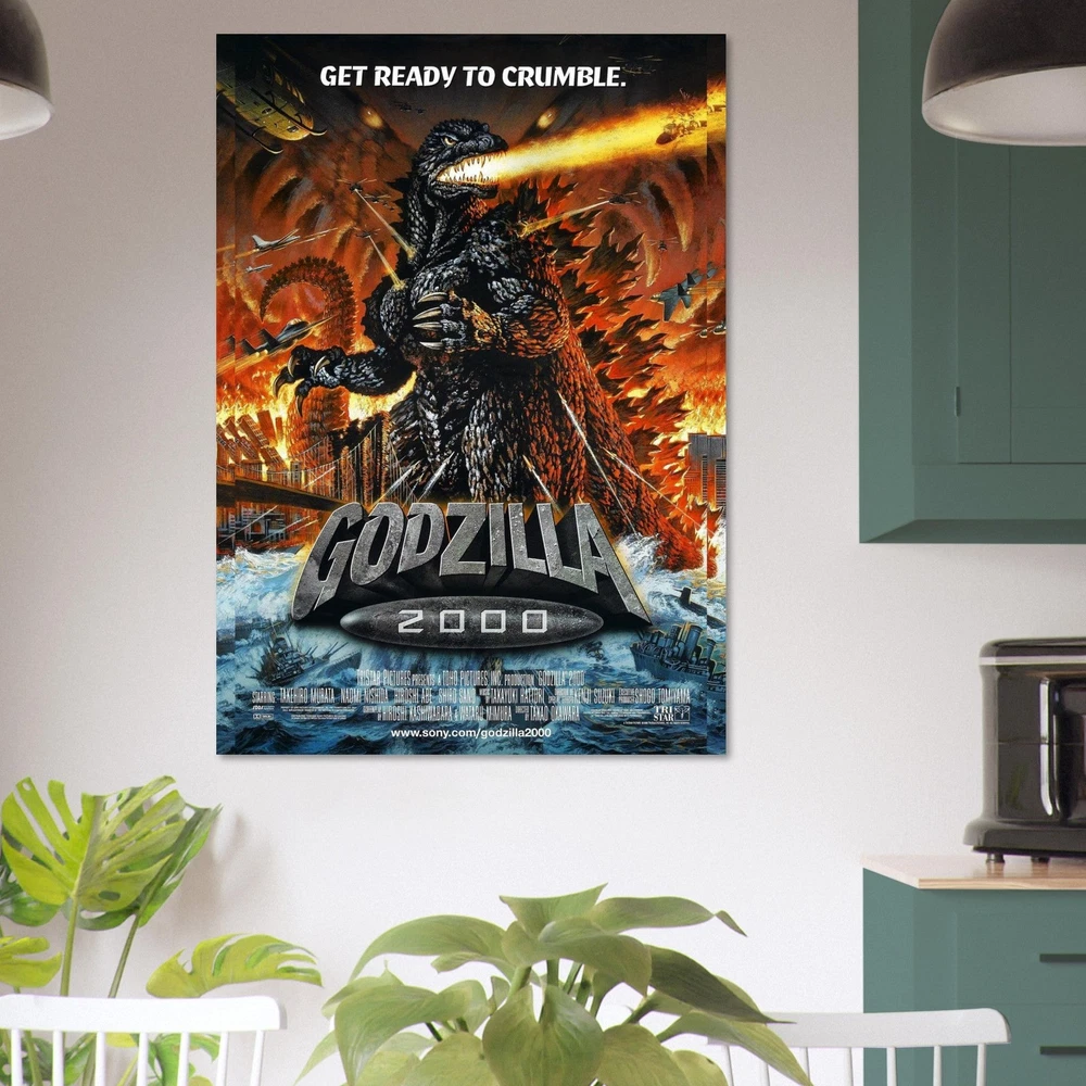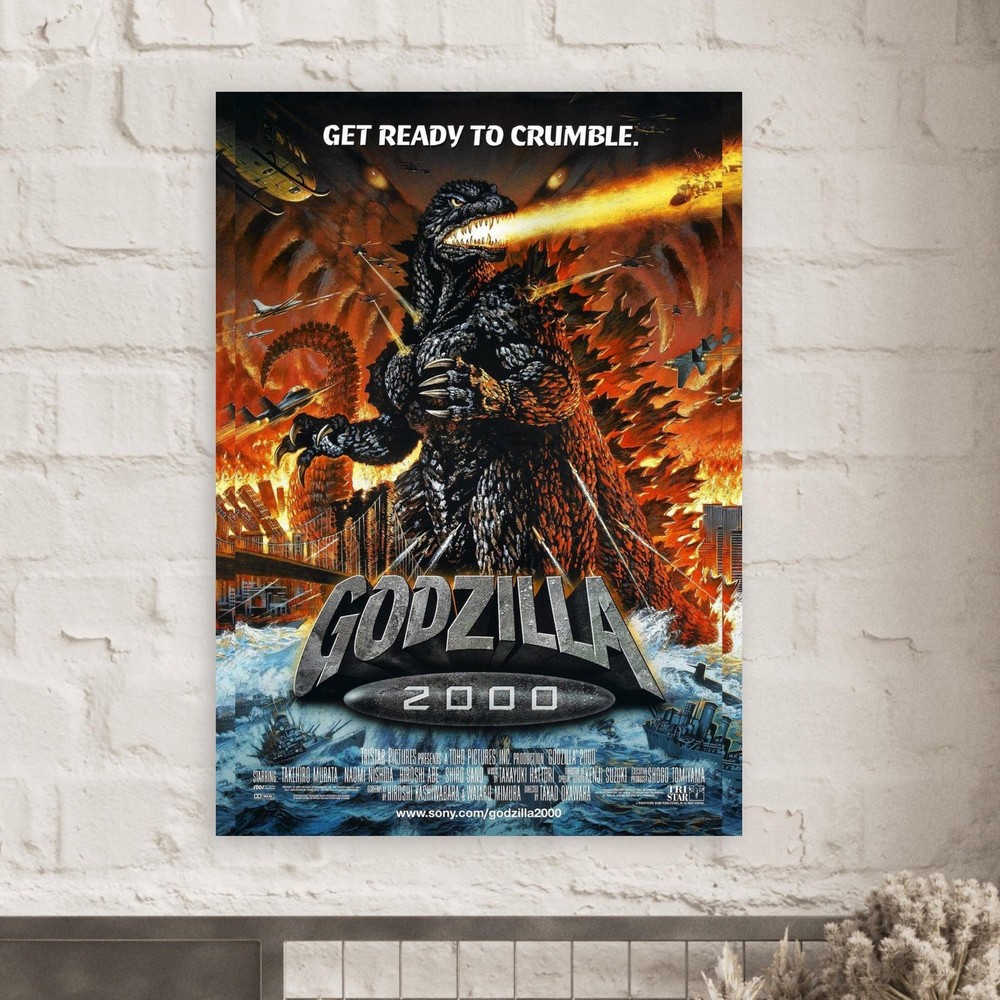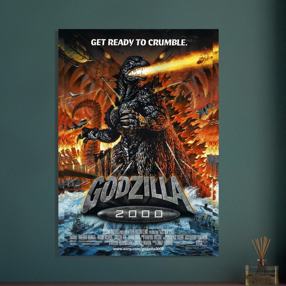 Dramatic movie poster featuring the iconic kaiju wreaking havoc in a blazing cityscape. Shows the legendary creature breathing atomic fire amidst explosions and destruction, with military aircraft in the background. Bold text declares 'GET READY TO CRUMBLE' against an intense orange and black color scheme --- FREE SHIPPING FOR EACH EXTRA POSTER YOU ORDER! Our premium semi-glossy paper enhances colors with a subtle shine and protects against fading from light or moisture: Paper Finishing: Semi-glossy, enhances colors with a subtle shine. Paper Weight: 200 gsm (80 lb), thickness: 0.22 mm (8.7 mils). Sustainable Paper: FSC-certified or equivalent paper for sustainability.