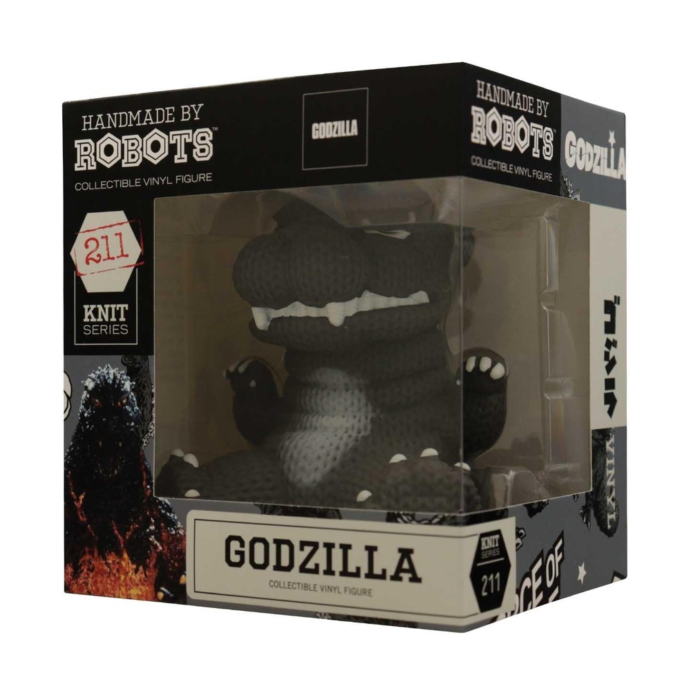 - Godzilla #211 Officially Licensed Approximately 5 inches tall and perfect for display or play Our friendly robots designed this figure to look like knit fabric at a glance, but it’s actually made of vinyl Signature vinyl tag on the figure, complete with barcode decal to resemble a sewn-in label