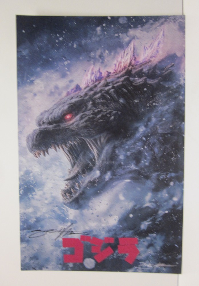 Godzilla 70th Aniv. by Jed Thomas. This print measures 11" x 17". Shipping for multiple items will be calculated. Shipping in the U.S. is calculated with USPS and we always combine shipping. Shipping out of the U.S. is calculated, with first class or priority mail. This print comes shrink wrapped to fome cor in the U.S. for safe shipping and ease of handling for buyer.This print is in no way affixed to fome cor, only wrapped and then shrunk.