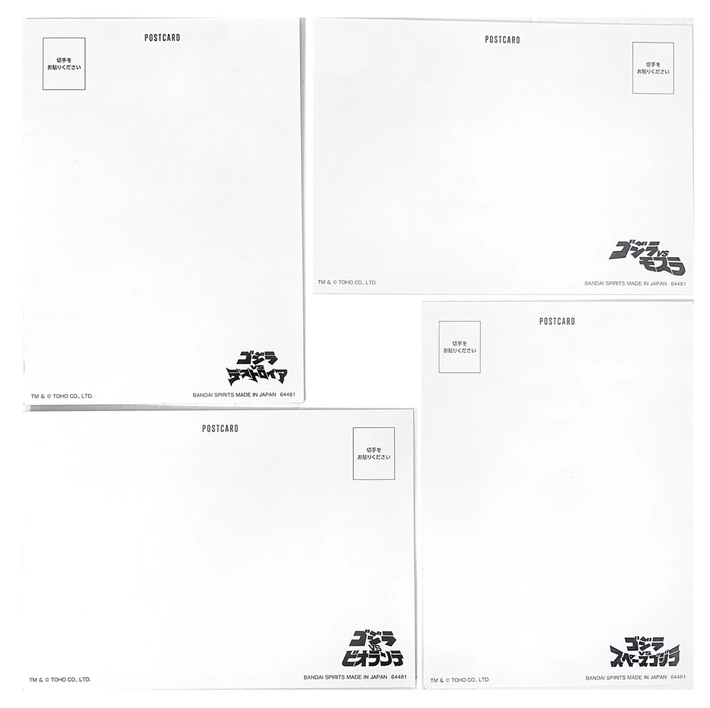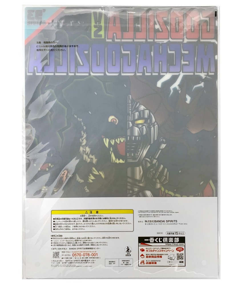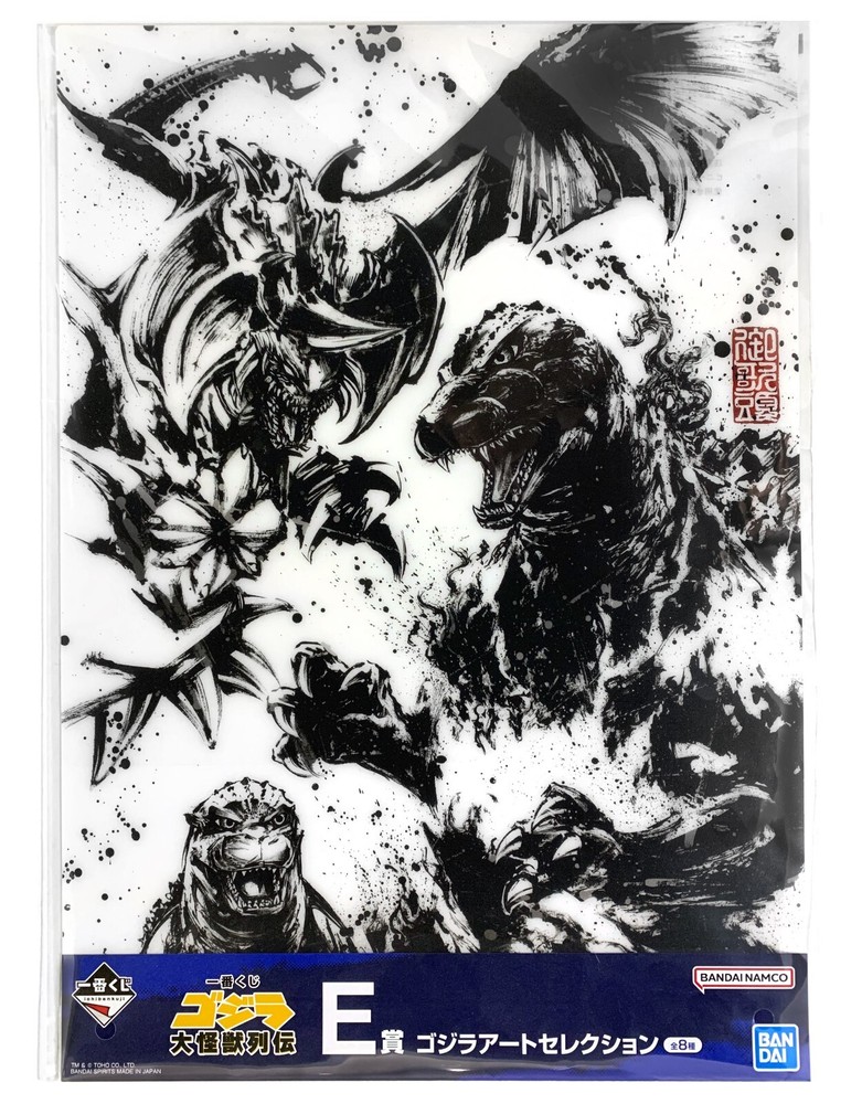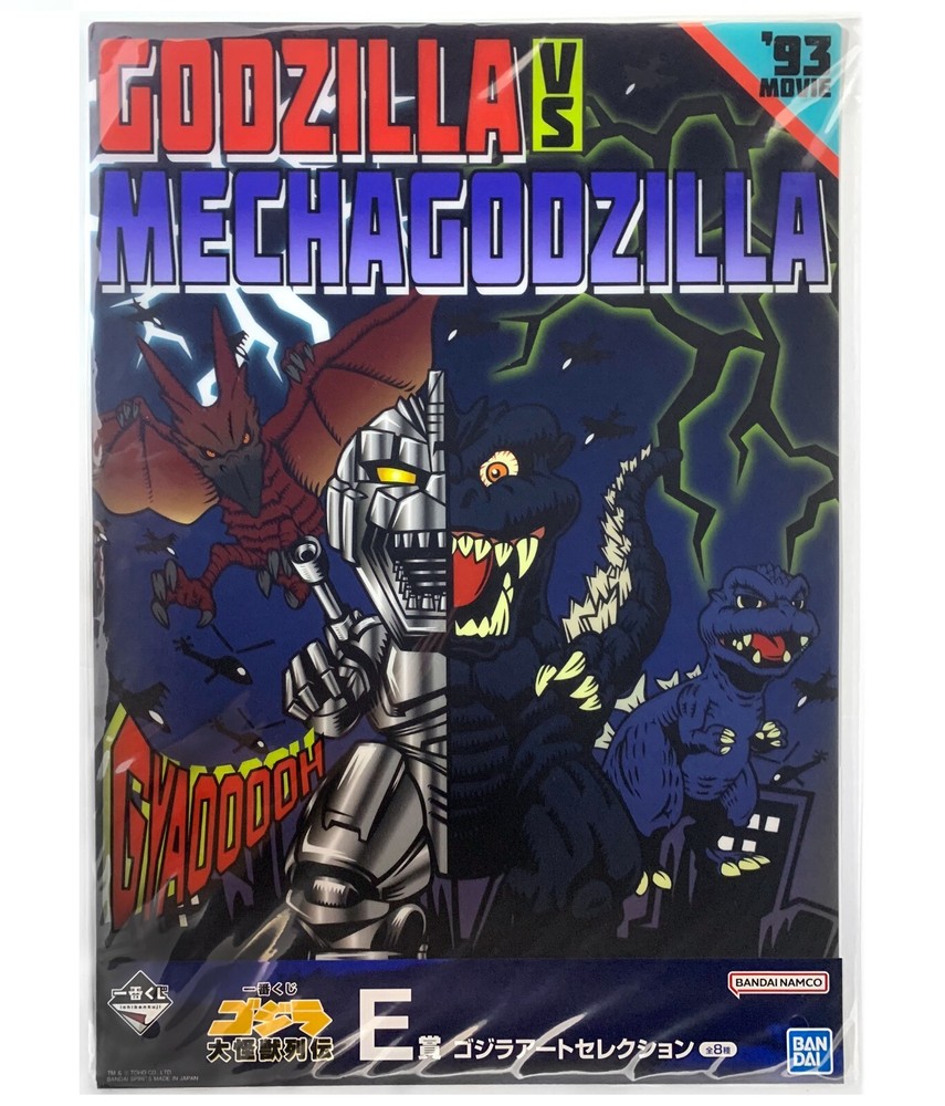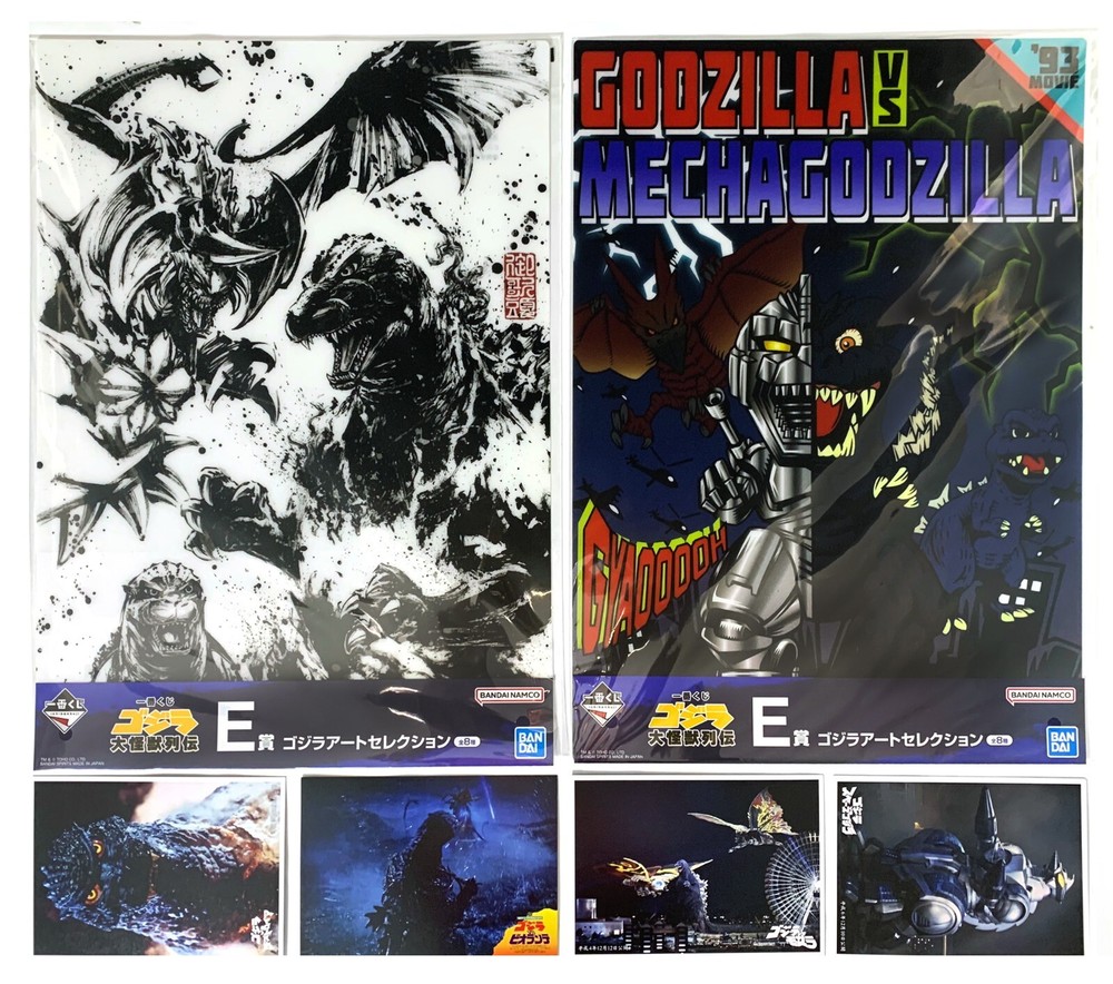 ICHIBAN KUJI "PRIZE E" PAIR OF GODZILLA ART SELECTION A3 CLEAR POSTERS + 4 POSTCARDS Using the motif of the Heisei series, each Art Selection Poster is printed on thick translucent plastic and measures 16.5" x 11.5" approx. Postcards feature scenes from Godzilla vs Biollante, Godzilla vs Mothra, Godzilla vs SpaceGodzilla and Godzilla vs Destoroyah. Each measures 6" x 4" approx. BRAND NEW factory sealed; authentic import.