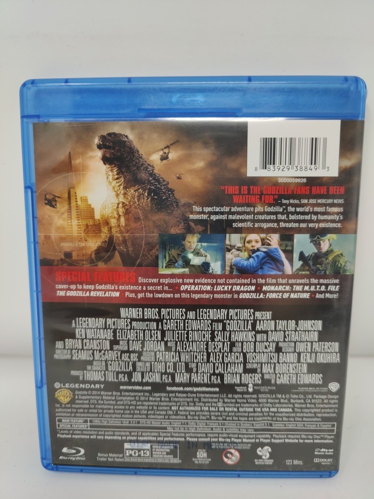 This Blu-ray disc of the 2014 movie "Godzilla" comes in a standard edition blu-ray case and includes a digital copy of the film. The disc is in the format of a creatures/monsters sub-genre and is categorized under movies and TV, DVDs & Blu-ray Discs. The dimensions of the case are 6 x 8 x 1 INCH and the disc weighs 0.480 lbs. The movie is a sci-fi and fantasy genre and features a creature/monster that is sure to thrill audiences. The release year of the movie is 2014 and the disc is in excellent working condition. Get ready to experience the epic battle between Godzilla and other creatures in this action-packed movie.