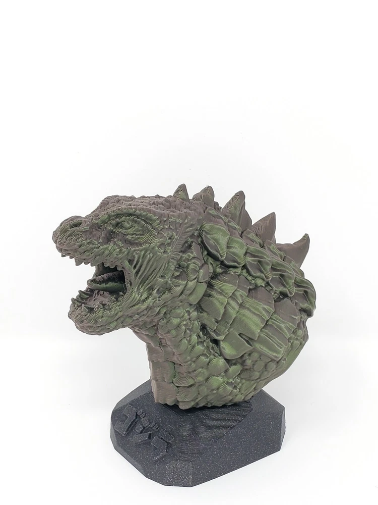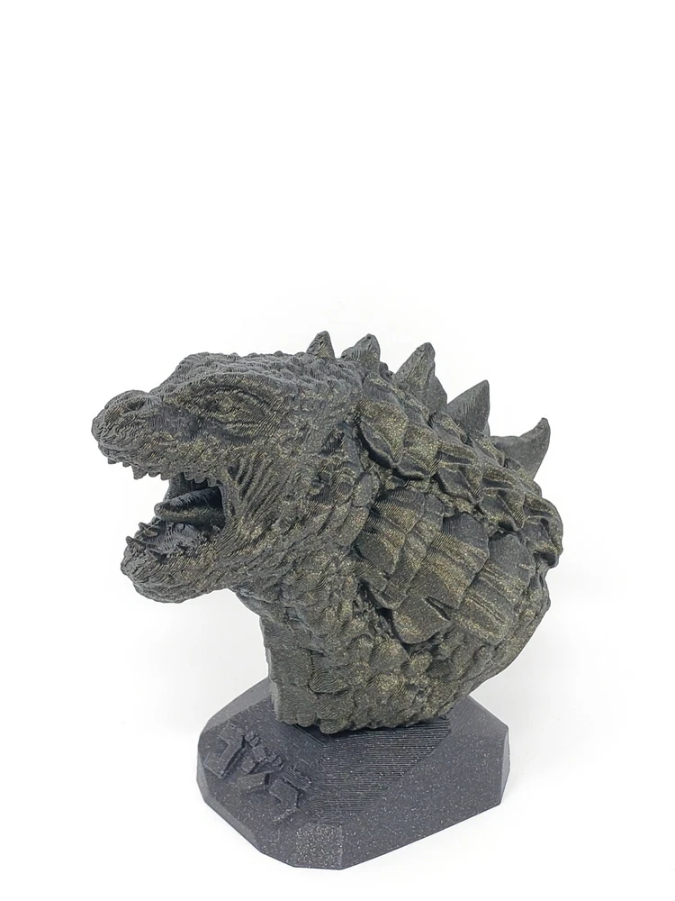 Fanzilla, Welcome aboard! Get your hands on this highly detailed 3d printed bust of Godzilla¹, King of Monsters! Printed on a Prusa MK3's 3d printer, the highest-rated 3D printer and the “Editor’s Choice” in the prestigious MAKE:MAGAZINE’s Digital Fabrication Guide 2019 and with the highest quality of PLA Filaments. Material: PLA Plastic (Polylactic acid plastic), eco friendly and biodegradable. Colour²: Depending on the selected option. Number of Parts: 2, bust and stand. Height Size Avaibility: - Small (4.5 in / 113.4 mm). - Medium (6.0 in / 151.2 mm). - Large (7.4 in 189.0 mm). - X-Large (8.9 in / 226.8 mm). Layer Height: 0.20 mm. Design: The model was designed by [Robby Rollin 3D]³ and printed by [RoastedPrint]. ********************************************************************************************************************************* ¹ This is not a licensed product, but an amazing fan art. ² Colour may vary a little from the original picture due to light variation: pictures are taken in a LED photo studio box. ³ If you do like his work, go support his Patreon page: https://www.patreon.com/3DprintingwithRoberRollin/ Message me if you have any questions about the item, the shipping process or anything else.