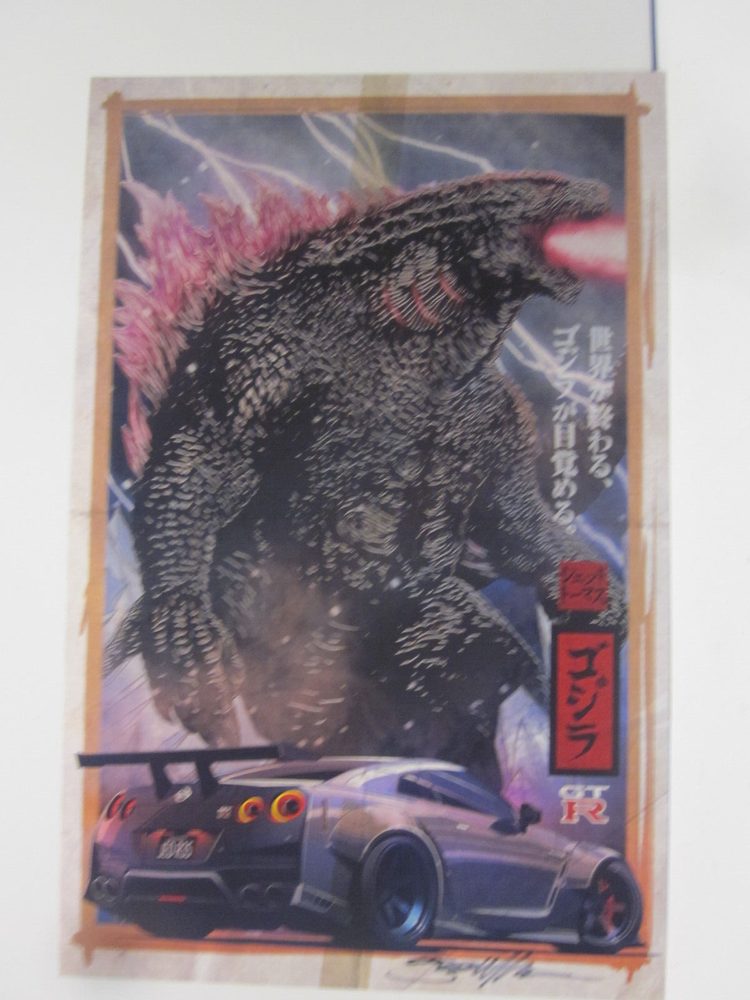 Godzilla By Ned Thomas Hand Signed Shrink Wrapped Print. This print measures 11" x 17". Shipping for multiple items will be calculated. Shipping in the U.S. is calculated with USPS and we always combine shipping. Shipping out of the U.S. is calculated, with first class or priority mail. This print comes shrink wrapped to fome cor in the U.S. for safe shipping and ease of handling for buyer.This print is in no way affixed to fome cor, only wrapped and then shrunk.
