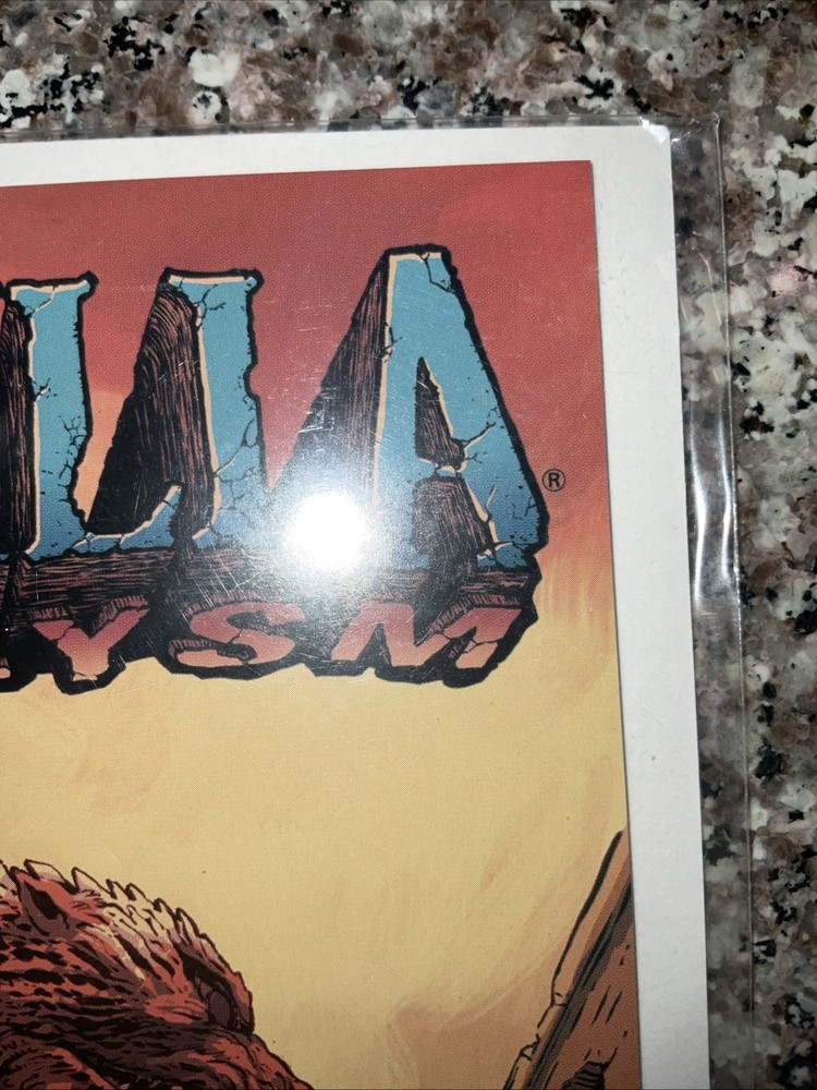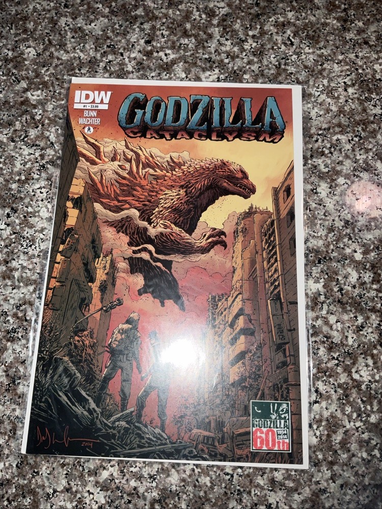 Godzilla Cataclysm #1 featuring the stunning artwork of Dave Wachter and story by Cullen Bunn. This IDW Publishing comic book from 2015 is a must-have for any fan of the modern age of comics. The vibrant color style captures the essence of the monster and the action-packed storyline will keep you on the edge of your seat. With its connections to the Godzilla universe, this single issue comic book is a valuable addition to any collection. The issue number 1 and the series title "Cataclysm" make this comic book a great start to any new collection. Don't miss out on this opportunity to own a piece of US comics history.