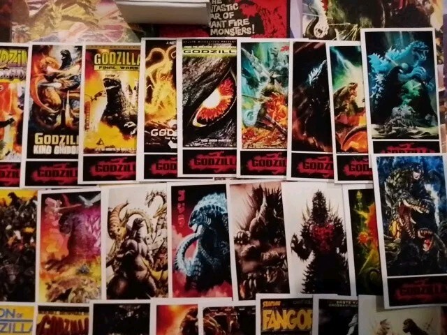 The "Godzilla Collection" consists of 8 glossy bookmarkers and a bonus set of 28 mini art cards. These items are from the United Kingdom and are part of a Sci-Fi/Fantasy genre. The lobby card set features images related to the iconic Godzilla franchise, making it a must-have for fans of the series. Additionally, the product is from the United Kingdom, adding a unique touch to this movie memorabilia.