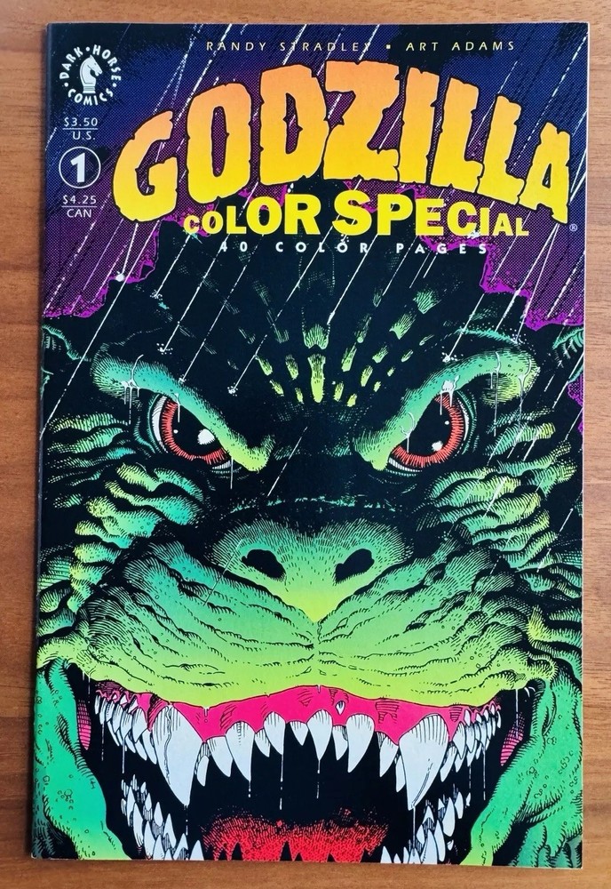 The product is a comic book titled "Godzilla Color Special #1" published by Dark Horse Comics in 1988. It features artwork by Art Adams and belongs to the US Comics tradition. The story within is titled "Hawkeye: Hawkeyes" and includes characters such as Godzilla and 4-LOM in a special edition format. This single issue comic is from the Modern Age era and is written in English. It is a collectible item for fans of comics and graphic novels. Combined shipping available for all items. eBay policies dictate that sale items can't be combined into one invoice post purchase. I will refund buyers for all shipping costs over actual shipping.