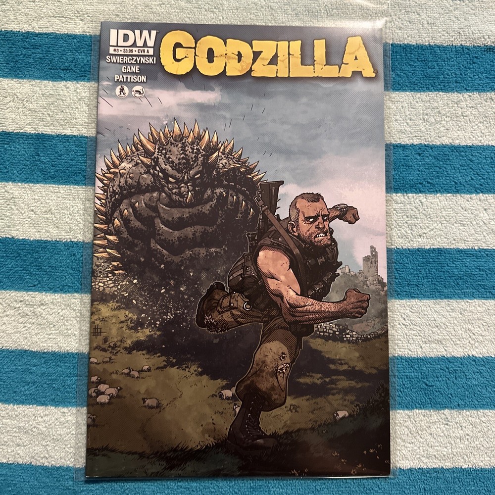 This Godzilla Comic #3 features cover variant A and is a single issue from IDW Publishing, published in July 2012. The comic book is in English and is part of the modern age era (1992-now) genre, with features of action and adventure. The main character is Simon Gane, a boxer, and the comic book also includes appearances from Godzilla, Battra, Anguirus, and other characters. The comic book is in a color style and is boarded. It is a great addition to any comic book collection and is perfect for fans of US Comics. This item is uncertified and is not personalized or inscribed. It is a great purchase for collectors and enthusiasts of comic books and graphic novels.