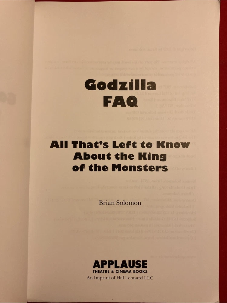 | Book Title | Godzilla Faq : All That&Apos;S Left to Know about the King of the Monsters |