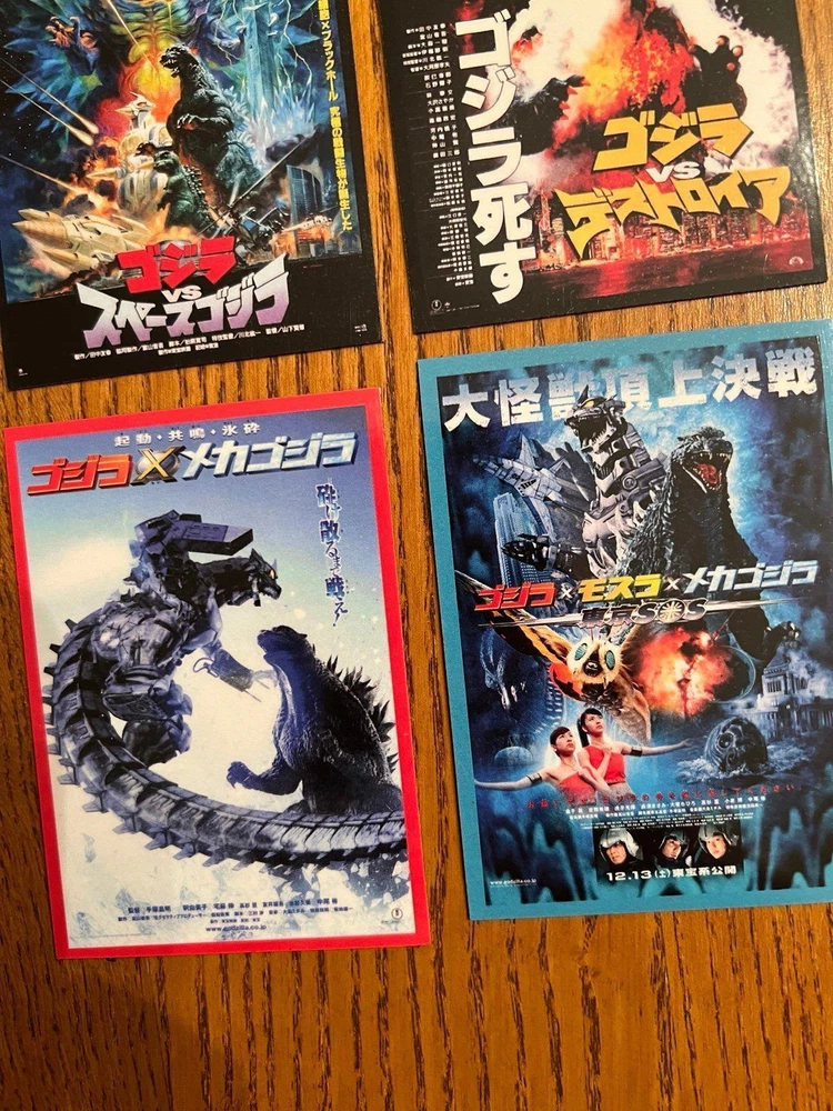 cool set of fifteen GODZILLA / Gojira movie poster art magnets from the original Toho series, measuring 2.65x3.75 per magnet they are super high quality and have a glossy finish to keep them clean and durable they are flexible and will stick to any magnetic appropriate surface - fridges, desks, lockers, doors, or other metal surfaces. includes magnets of: The return of Godzilla -1984 Godzilla vs Biollante - 1989 Godzilla vs King Ghidorah - 1991 Godzilla vs mothra - 1992 Godzilla vs mechagodIlla 2 - 1993 Godzilla vs Space Godzilla - 1994 Godzilla vs Destoroyah - 1995 Godzilla 2000 Millennium - 1999 Godzilla vs megaguirus - 2000 Godzilla, Mothra & King Ghidorah: Giant Monsters All-Out Attack -2001 Godzilla against mechagodzilla - 2002 Godzilla: Tokyo SOS - 2003 Godzilla - final wars - 2004 Shin Godzilla - 2016 Godzilla minus one - 2023 price includes all 15 magnets. Also happy to combine with other orders for a discount or create custom sets/collections - just ask!