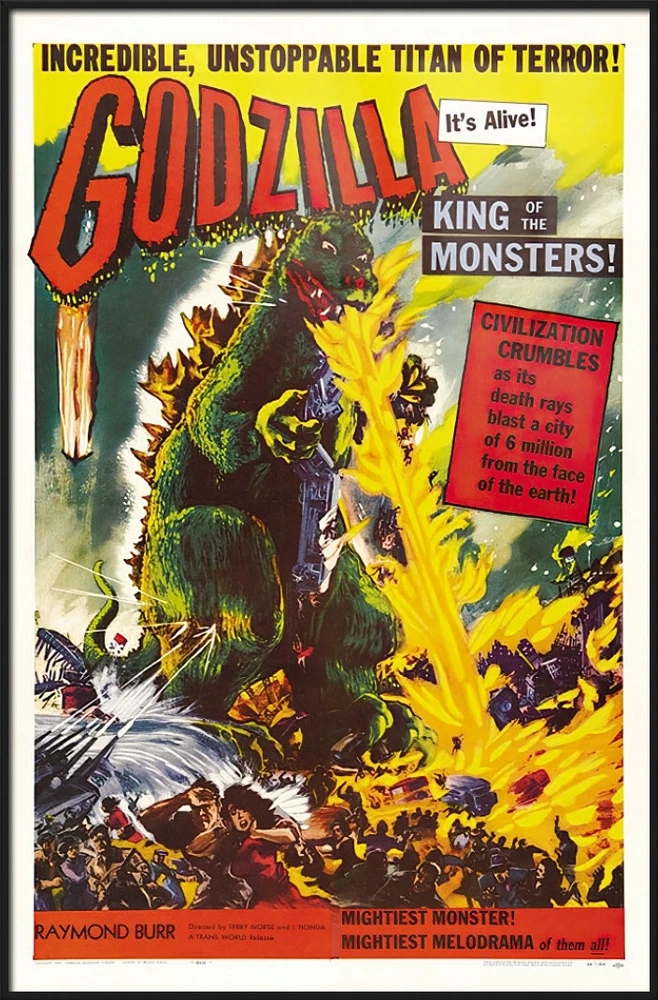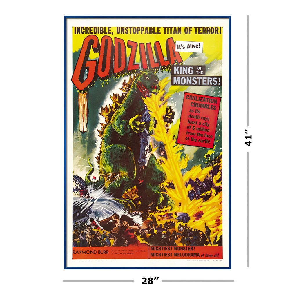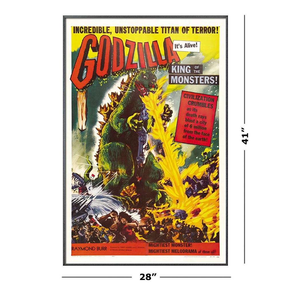 Godzilla - Framed Movie Poster (Classic - King Of Monsters) (Size: 27" x 40") Framed Poster Product Condition: New Frame Material: Aluminum or Plastic. Please select your choice in the drop down menu on top Frame Size: 28" x 41" Poster Size: 27" x 40" Each Frame has sawtooth hangers on the back for vertical or horizontal hanging. Should you ever get tired of your poster, you can re-use the frame with a different poster so you can enjoy your frame for years to come. To select the frame you would like, simply go to the top of the listing and next to the gallery picture you can select the the frame material and color from the drop down menu. You will also see a more detailed view of the frame and what your framed poster will look like. All our frames are also available individually (without posters) About Us: Movie Posters USA is a full time, US based, eBay seller and we have been in business since 2005. We are committed to giving you the best shopping experience possible and our goal always has and always will be your complete satisfaction. Please feel free to contact us with ANY questions about a product or an order. We are here for you and because of you. Thank You!!!