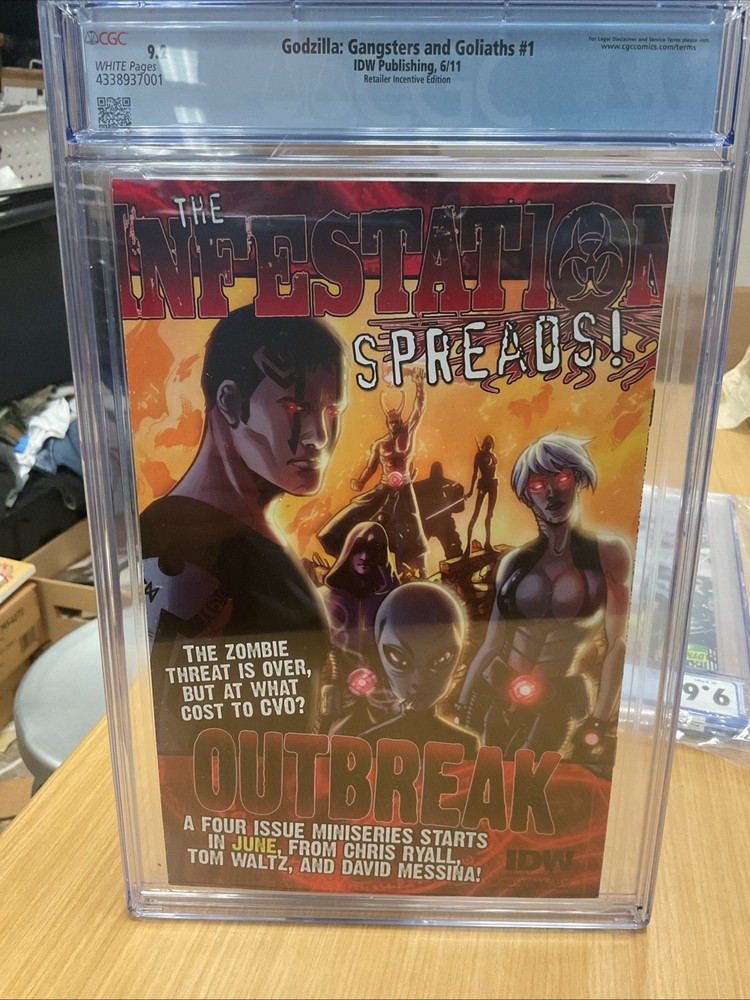 This is a must-have for any fan of US Comics. The first issue of Godzilla Gangsters & Goliaths features the King of Monsters himself, Godzilla, in a thrilling adventure. Published by IDW, this comic book is a great addition to any collection. The CGC grade of 9.2 ensures that the book is in excellent condition, making it a valuable investment for any collector. The cover art is stunning and will make a great display piece. Don't miss out on the opportunity to own this iconic comic book.