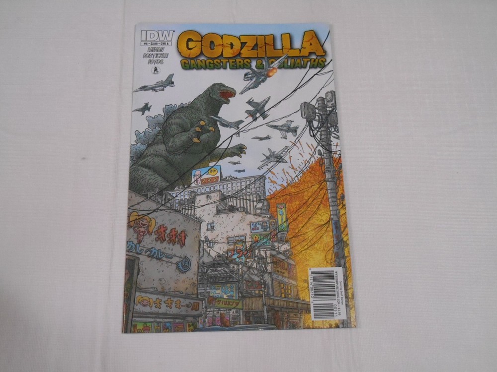 Godzilla: Gangsters & Goliaths #5 . Pub. Oct. 2011 , 8.0 VF. The cover is attached at both staples. The pages are white with the centerfold attached at both staples. All comics are placed in Acid free backed covers. I strive to grade & price the comics as accurately as I can using the Overstreet Pricing & Grading guides as well as researching ebay current pricing. All purchases are shipped in either a bubble mailer (Between 2 pieces of cardboard) or boxes depending on the number of items. I do try to combine multiple purchases to reduce shipping costs. Multiple items are bubble wrapped as one item before packing into boxes. I nternational buyers are responsible for the Ebay global shipping charges as well as any import charges or fees required by their local post office. Please email if you have any questions or concerns that the pictures may not show before purchases. It is my goal to make all my transactions as positive and accurate as possible. If you have any concerns after delivery, please contact me before leaving feedback. THX for taking the time to look.