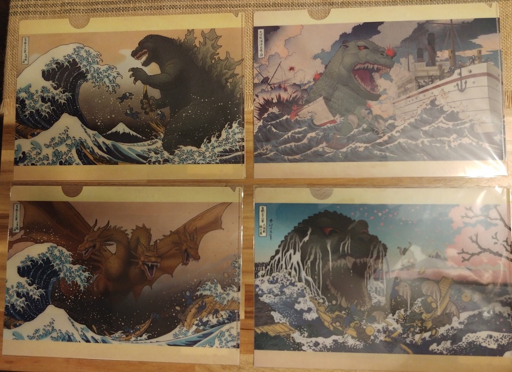 Hello, and thanks for viewing my auction. This listing is for a set of file folders as pictured. These are made in Japan under license from TOHO, and are official Godzilla merchandise. They are all in the plastic packaging they came in, and have never been used. The picture with all four folders are the actual items you will recieve. Shipping will be USPS priority.