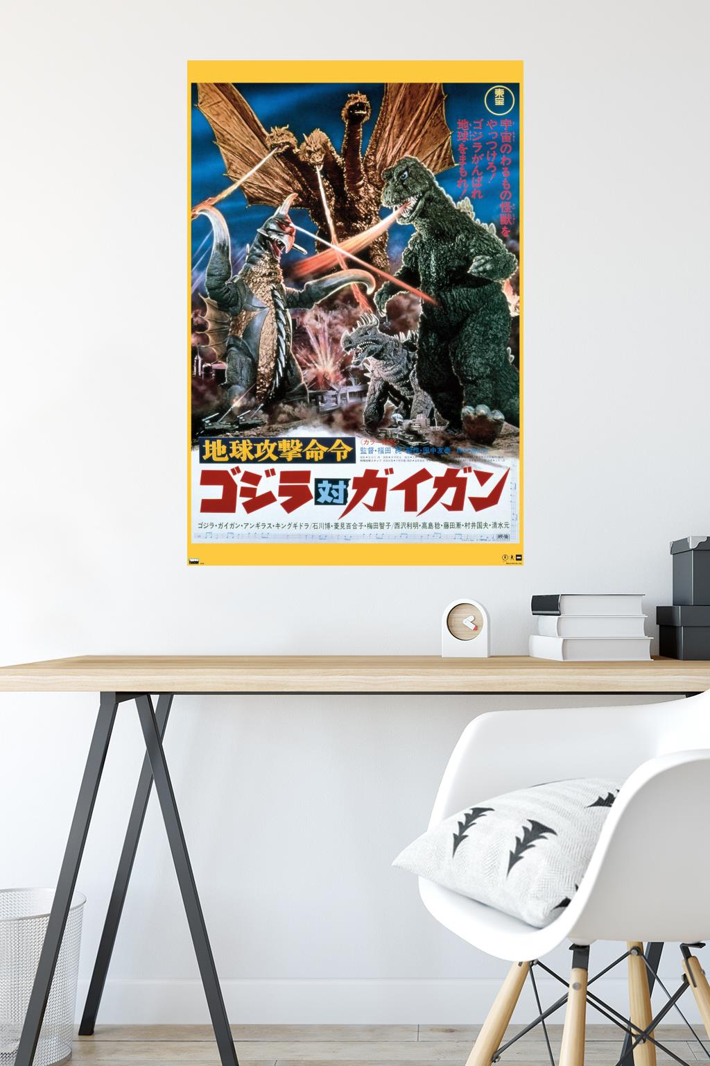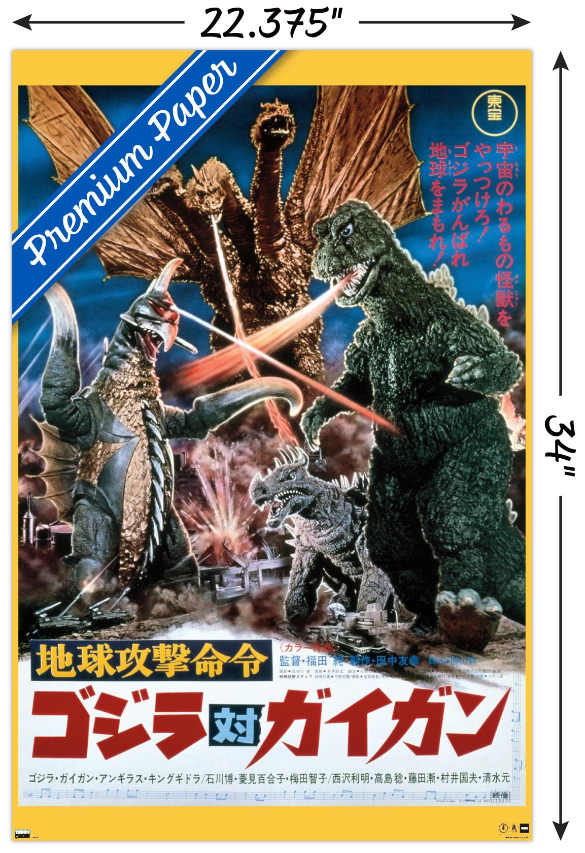 Trends International wall posters are everyone's favorite room decor! This Godzilla - Godzilla vs Gigan (1972) Wall Poster is created with high-resolution artwork and is printed on glossy poster paper which enhances the colors to make a bold wall decor statement in any room. Decorate the bedroom, bathroom, kid's room, living room, office, dorm, and more! Our art prints are lightweight and easy to hang using the included adhesive poster mounts that won't leave holes in your poster or damage your wall like nails, thumb tacks, or push pins. Every one of our premium posters are proudly Made in the USA. Add these decorations alongside the other accessories on your party supplies list too! Trends International's wall posters are the perfect way to dress up your parties. Poster bundles make great gifts as well! Whether it's for a birthday, Christmas, house warming or for your best friend, they'll love receiving a poster and mount bundle to show off their style.