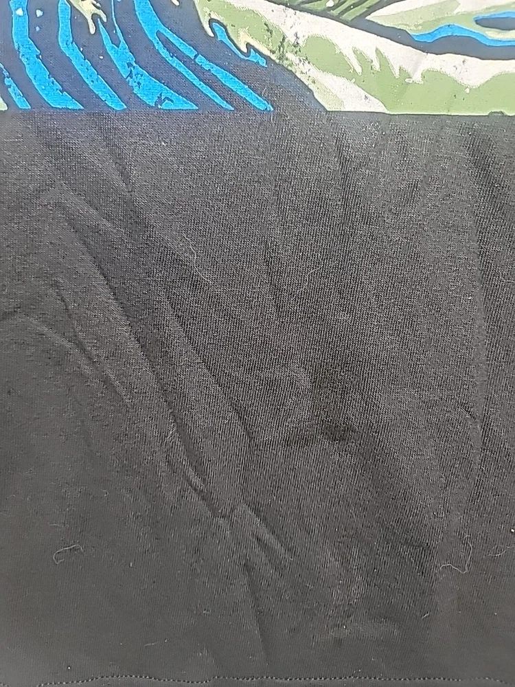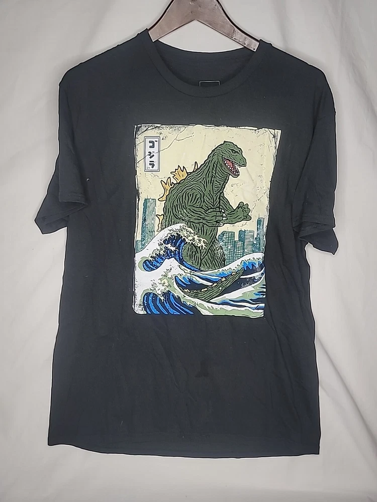 This Godzilla Great Wave Kanagawa T-Shirt is a must-have for fans of the classic monster and Japanese art. The shirt features a crew neck and short sleeves, with a slim fit that is perfect for any season. The black cotton fabric is soft and machine washable, making it easy to care for. The shirt has a graphic print that features the iconic Gojira, Kaiju, and Godzilla characters, as well as the Great Wave Off Kanagawa and Big Wave designs. The mashup art style adds a unique touch to this classic retro tee. This T-Shirt is perfect for anyone who loves monster movies and Japanese art. *Please See Photos For Condition Ask Questions Sold As Is*