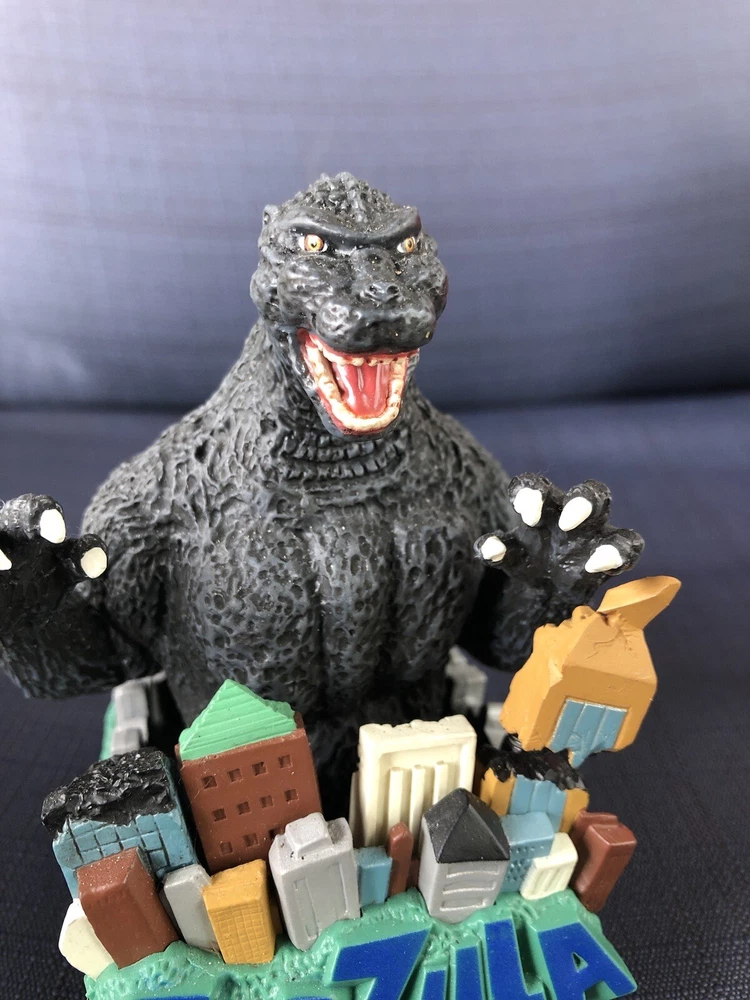 Godzilla Greetings Carlton Heirloom Christmas Ornament Sound 2006 #147 *VIDEO*. Preowned Godzilla Greetings ornament. Box shows some wear, see photos. See video in photos to see and hear ornament! Plays the Godzilla then when you touch button in back corner. Godzilla and the building are both in springs do they “shake”. Very cute! Smoke free home.