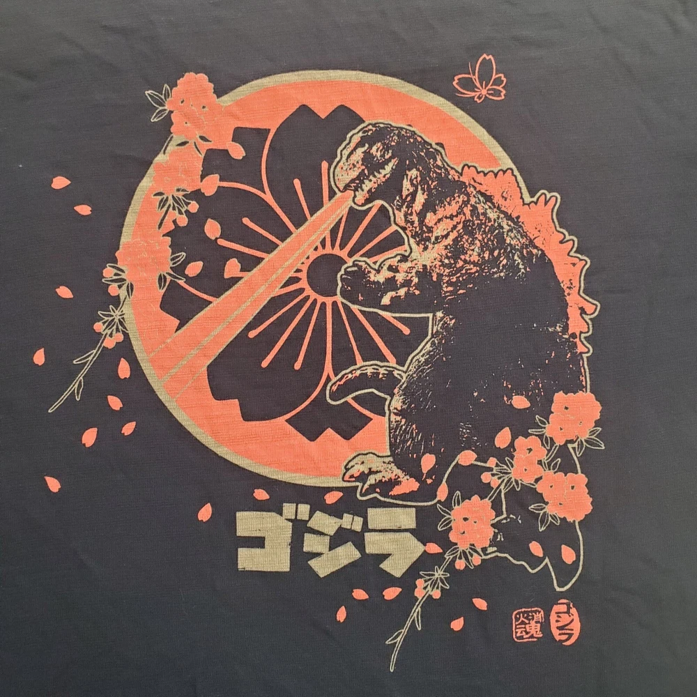 A striking HIKESHI SPIRIT graphic tee featuring Godzilla and Japanese-inspired artwork. This stylish shirt showcases a unique design with Godzilla imagery intertwined with traditional Japanese elements like cherry blossoms and a stylized sun. The back features a large Godzilla graphic with Japanese text, while the front has a smaller, more subtle logo. Perfect for fans of Godzilla, Japanese culture, or anyone looking for a standout piece, this tee is ideal for casual outings, conventions, or adding a touch of unique flair to your everyday wardrobe. Color: Blue Department: Men Type: T-Shirt Sleeve Length: Short Sleeve Character: Godzilla Pattern: Graphic Print Character Family: Godzilla Neckline: Round Neck Features: Tagless Material: Cotton Keywords: HIKESHI SPIRIT, Godzilla T-Shirt, Graphic Tee, Japanese Art, Mens T-Shirt, Anime Shirt, Kaiju, Streetwear, Designer T-Shirt, Godzilla, Japan, Hikeshi, Spirit, Movie Tee, Pop Culture