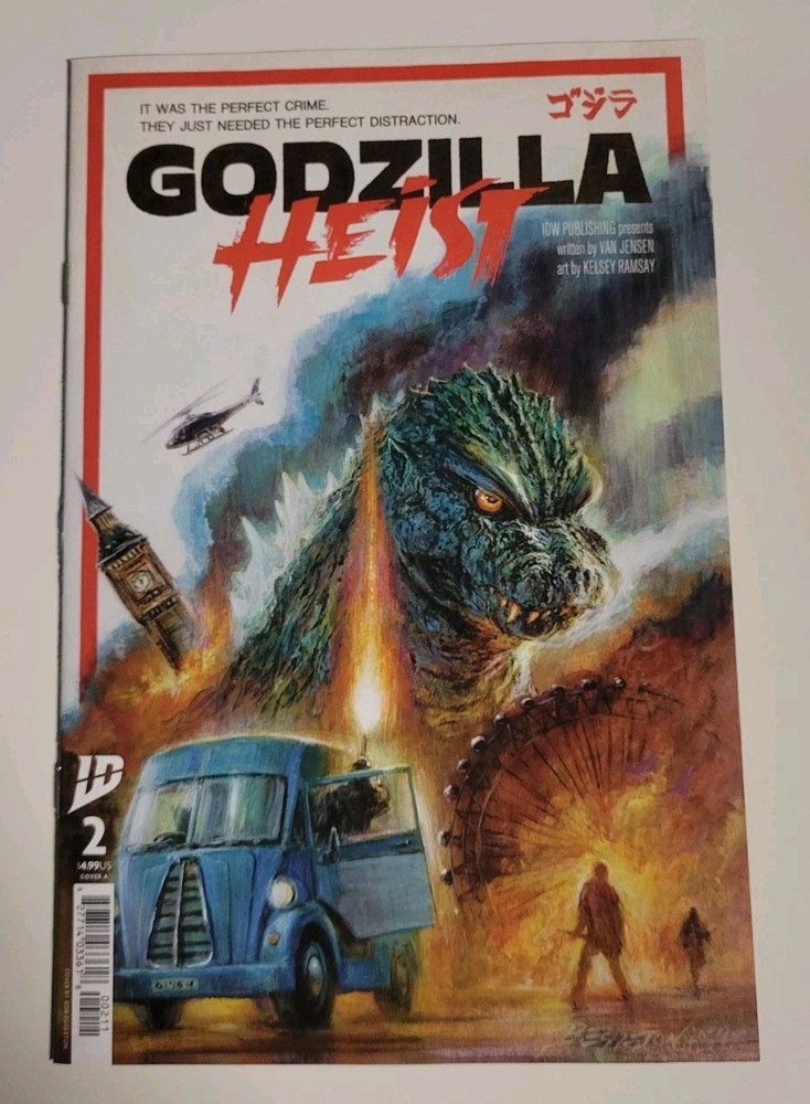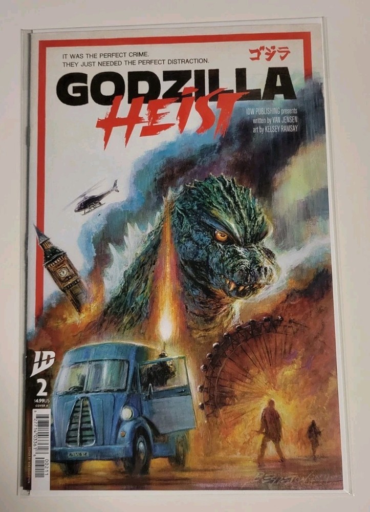 Godzilla: Heist #2 04/02/2025 VF+ Cover A (Eggleton) IDW PUBLISHING. Shipped SECURELY USPS Mail. Bagged and Boarded. Godzilla: Heist #2 Cover A (Eggleton) We offer EASY AUTOMATIC Combined Shipping! Check out our storefront for details. Please let me know if you have any questions!!! Godzilla has touched down in London. The heist is ready to begin…but before our crew can rob the Ministry of Defense, they have to lure Godzilla across the city and directly to its front gates. And so begins the greatest chase sequence in comic book history! One crew, one Godzilla, one city—can they make it across without getting smashed?!