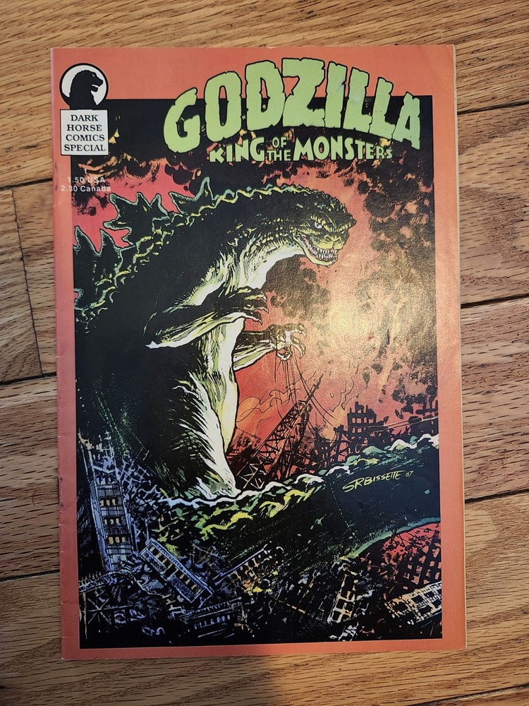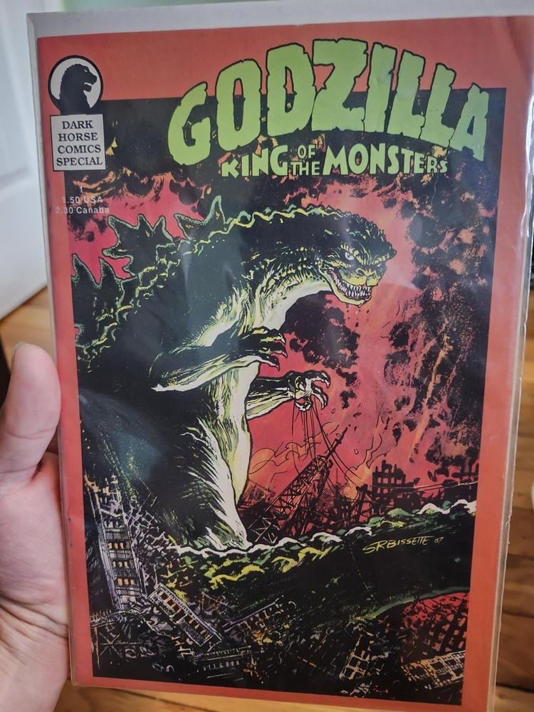 The Godzilla, King of the Monsters Special #1 comic book, published by Dark Horse Comics in August 1987, features artwork by Stephen R. Bissette, Ron Randall, Randy Stradley, Tony Salmons, and Art Nichols, with cover art by Steve Mattsson and Stephen R. Bissette. This single issue, 36-page comic is part of the US Comics tradition and falls under the genre of Science Fiction. Set in the Copper Age, this black and white comic book showcases the iconic character Godzilla in a thrilling and action-packed story that will surely captivate fans of the franchise and collectors alike.