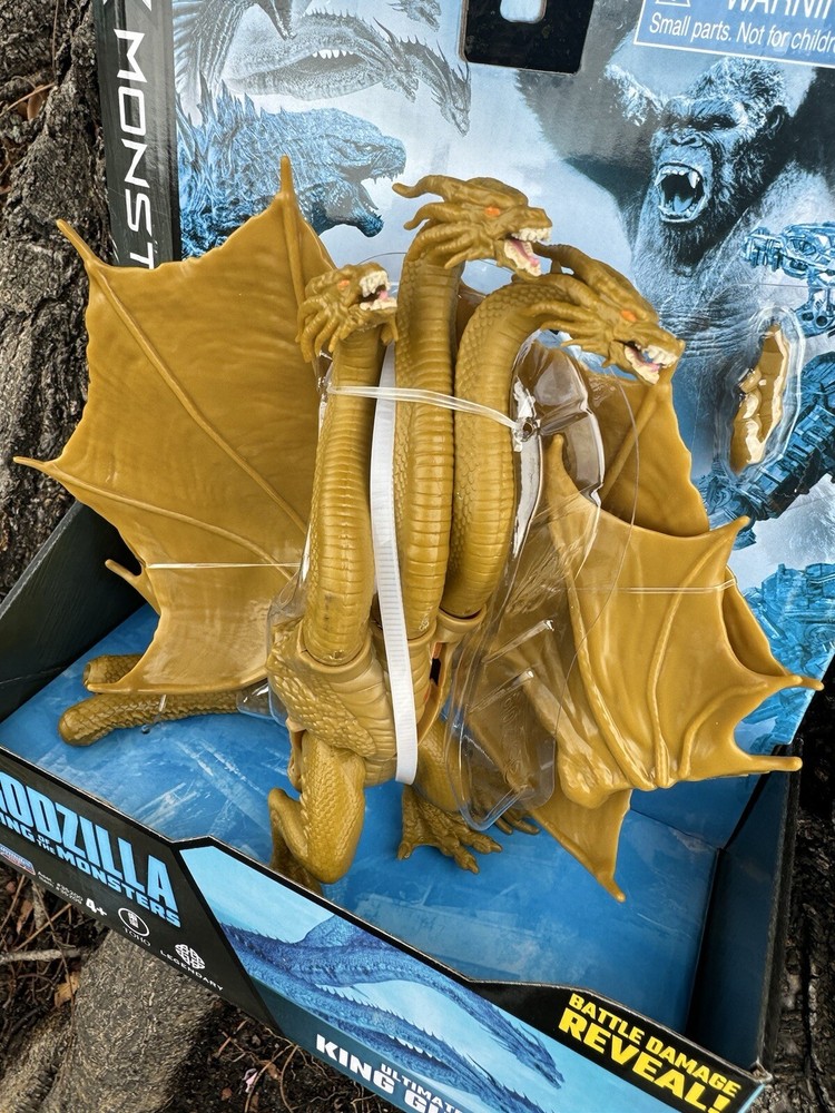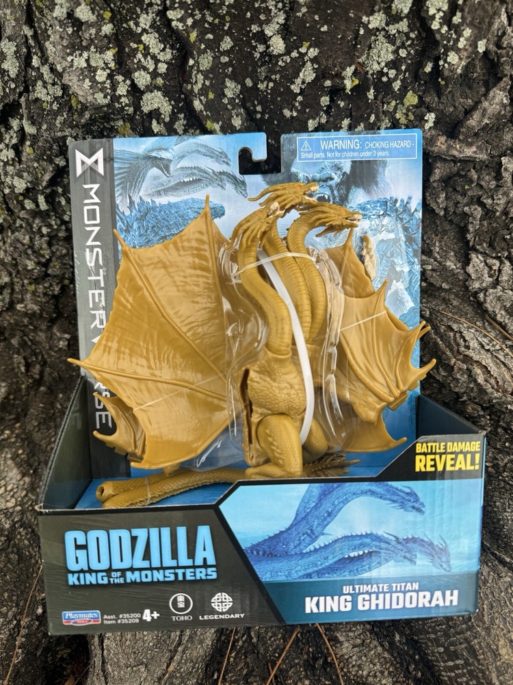 This Godzilla King of the Monsters Ultimate Titan King Ghidorah figure is a must-have for any fan of the Monsterverse franchise. With a 1:12 scale, this action figure is made of high-quality ABS, ABS plastic, and plastic materials, ensuring durability and longevity. The figure comes with an adjustable design and is boxed for display. The figure features the iconic characters of Ultimate Titan King Ghidorah and Godzilla from the Godzilla King of the Monsters movie and TV show. It is an original licensed reproduction from Playmates Toys, with no vintage elements. The figure is suitable for ages 4 and up and is perfect for collectors and fans alike. Item as Pictured!