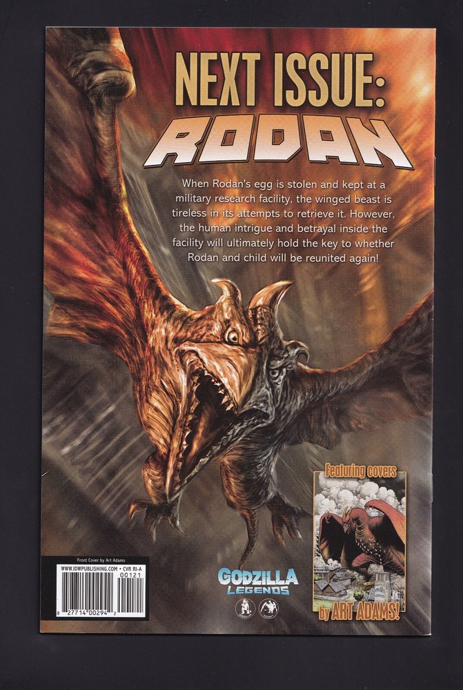 Godzilla Legends #1 & #2 + Retailer Incentive 1:10 Variants Art Adams IDW 2011 Condition: Nice high grade set overall, Bright flat & glossy with sharp corners. #1A: 2 small color breaking spine stresses below top staple. Minor corner wear top left. #1 RI: 1 very minor color breaking spine stress. #2A: 2 very minor color breaking spine stresses below top staple. very minor corner wear top left. #2 RI: 3 medium color breaking spine stresses, very minor corner wear top/bottom left. See photos Orders of 1-3 comics get shipped in heavy duty Gemini comic book mailers, the best mailing material there is for shipping comics! We Combine Shipping! Rates for normal sized comics, (reflecting the January 2024 USPS rate hike): 1 Comic: $6.75 (USPS Ground Advantage) 2 Comics: $7.45 (USPS Ground Advantage) 3 Comics: $8.00 (USPS Ground Advantage) 4 Comics: $9.50 (USPS Ground Advantage) 5-15 comics: $9.75 (Legal Flat Rate Priority Envelope) 16-50ish comics: $18.50 (Priority Medium Sized Box) To combine shipping, place all items in your shopping cart and then hit the Request Total From Seller button. This will save you on money and, what's better than money, time!