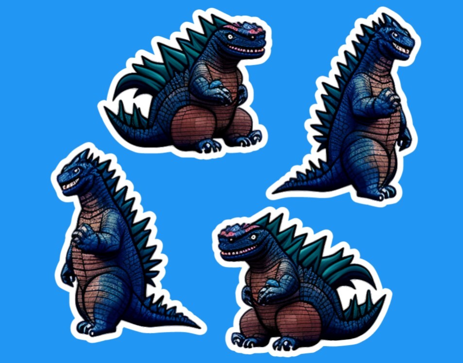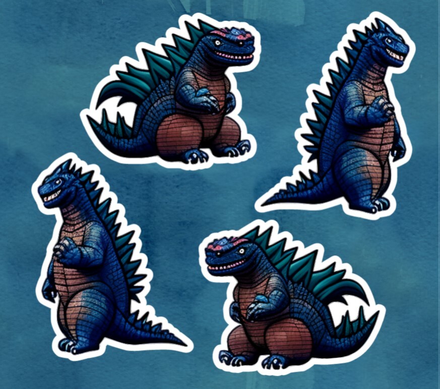 Please note that lower priced alternative shipping may be available. Please message me PRIOR to ordering for pricing. Godzilla Monster Art Stickers. These bright coloured Art Stickers were created with Godzilla in mind and are my own one of kind creations using my creativity & Ai (Artificial Intelligence). Whether you purchase the vinyl only or waterproofed version, these bright and vibrant colour stickers would look great just about anywhere . Shipping by regular mail MAY be available. Please message me. All vinyl decals/stickers are hand made by me and are not mass produced! Available in two sizes. Stickers are available die cut as weatherproof ( matte finish) or with oraguard gloss/Matte UV/waterproof). Note: if you would like your stickers left on the sheet, please message me using the perononalization section - note that material on sheet must have oraguard to be waterproof. Godzilla Monster stickers can be applied to your car, truck, window, bumper computer, laptop, cell phone, skateboard, house, workplace, walls, doors, planners, calendars, or just about anywhere. Decals are great for outdoor and indoor use . Decals that have an added layer of Oraguard 200 will be protect from sun fading for up to two years otherwise the material is considered "weatherproof". Waterproofing with Oraguard has been TESTED by me and waterproofed stickers will stand up to hot water and hand washing. Decals are removable but NOT able to be re-applied. Surface must by dry and clean before application. All items are sent using letter mail services. No tracking provided