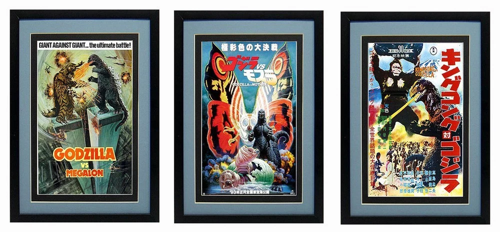***The Perfect Gift For any Godzilla Fan***(Including yourself) This set of 3 framed prints fit very elegantly in any office or study. Framed Size: 15 x 20 inches each Image Size: 11 x 17 Inches This is a high quality custom framed & matted Prints. The double mat adds depth giving the display a unique "looking through a window'' appearance. The print is bonded to foam core on a hot vacuum press. This bonding gives the print a perfect flat and smooth texture. This process also insures the prints will never fold or fade with age or moisture. This wonderful display makes a thoughtful and original gift containing a classic vintage touch yet modern design, allowing it to fit alongside both modern and classic decor. BUY WITH CONFIDENCE. ALL OF MY DELICATE ITEMS ARE SHIPPED WITH A SPECIAL 3 LAYER PROTECTION SYSTEM. On Aug 23, 2023 at 01:44:36 PDT, seller added the following information: