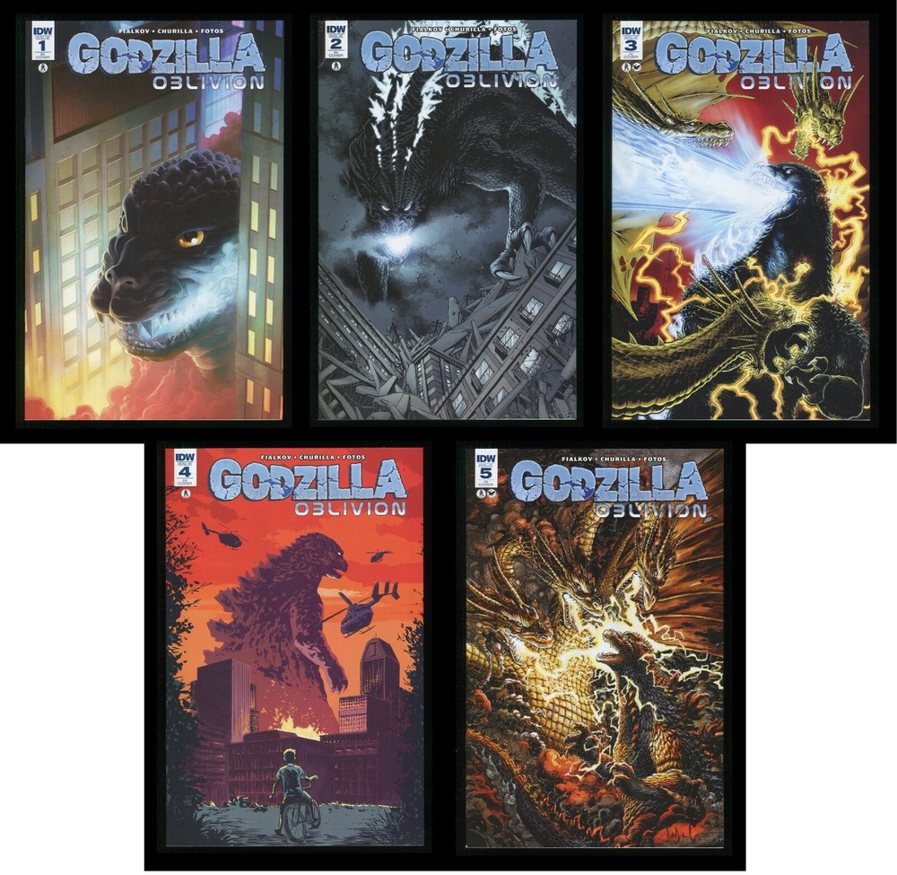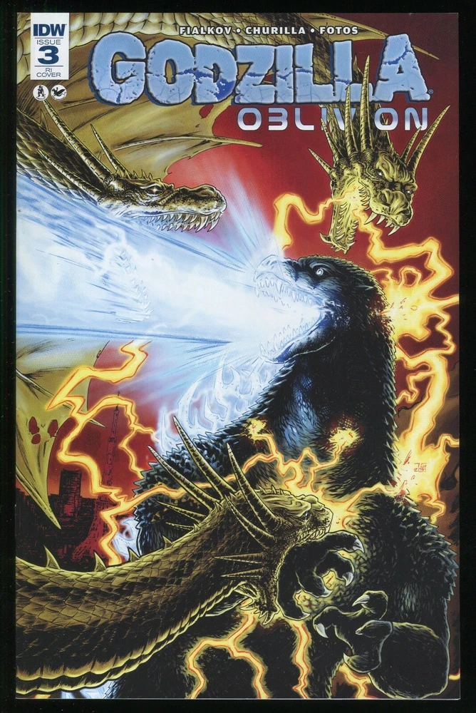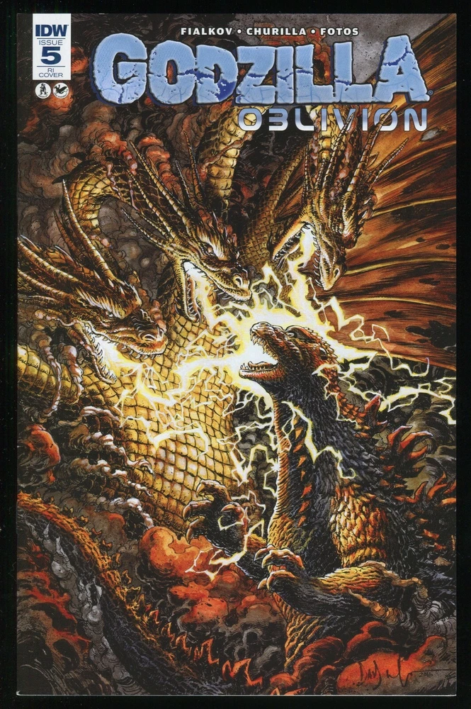 Godzilla: Oblivion RI Variant Comics Lot Featuring the Complete Retailer Incentive Collection. Awesome!! Writer: Joshua Fialkov Artist: Brian Churilla Colorist: Jay Fotos Letterer: Chris Mowry Editor: Bobby Curnow Variant Cover #1RI by: Graham Nakamura Variant Cover #2RI by: Jimbo Salgado Variant Cover #3RI by: Tadd Galusha Variant Cover #4RI by: Michael Walsh Variant Cover #5RI by: David Wachter It’s the end of the world as we know it in Godzilla: Oblivion, the stunning five-part presentation from IDW Publishing. As monsters swarm from a ravaged alternative dimension to destroy the world! Battles rage across this Earth that has never known monsters, the foolhardy experiments of the scientists and the military to visit other dimensions have now doomed all civilization, can there be any possible hope of escape now? Get ready for the most epic Godzilla battle of them all!... And if that were not enough, how about a worldwide nuclear strike about to be launched!! Featuring the amazing Retailer Incentive "Godzilla Cover Art" by Graham Nakamura, Jimbo Salgado, Tadd Galusha, Michael Walsh, & David Wachter! Awesome!!! Story/Spoilers: In issue #1RI, In the laboratory of Dr. Eli Talbert, his assistant Ridley informs him that the interdimensional portal they had been working on is finally completed. Just then, Talbert's employer Ms. Yamada enters the laboratory and tells Talbert to turn on the portal. Talbert warns Ms. Yamada that the portal is a completely untested technology that requires further testing, but she tells him that his only job was to build the portal, and that job is now completed. Talbert activates the portal, and Ms. Yamada and her bodyguards go through, with Talbert close behind. On the other side of the portal, they find themselves in the ruins of a city. As they wander through the ruins, the bodyguards notice something fly past them and open fire at it. One bodyguard walks towards it, only for the creature to reveal itself as a tiny Rodan, who kills the bodyguard with its uranium heat beam. The group suddenly hears a voice ordering them to return to a shelter as Kiryu arrives and attacks the Rodan. As Kiryu blasts the Rodan with a laser beam, several more Rodans descend and swarm the machine. The humans start to run away, but one Rodan catches up with them. Before the Rodan can carry off one of the bodyguards, it is blasted by a soldier wielding a laser gun. The soldier and the rest of his men load Talbert, Yamada and the bodyguards onto a truck and drive away. The soldier chastises Talbert and Ms. Yamada for wandering in the area most populated by giant monsters. Talbert asks what happened to the city, only for the soldier to incredulously ask if he is kidding. Ms. Yamada explains that they are "visitors" to the city, and that their transport broke down. The soldier then explains that the giant monsters began appearing about ten years ago and terrorized the Earth, only for a much more powerful monster to appear and end their reign of terror. He orders the shades on the truck to be lowered, and shows them the monster in question: Godzilla. The soldier says that Godzilla keeps the other monsters in check and prevents them from growing to full size, and that he and his men do whatever it takes to keep Godzilla happy. Talbert tells them to turn the truck around, and one of Ms. Yamada's men holds the soldier at gunpoint. The truck drops them off, near a battle between two Rodans and two Mothra larvae. As they run back to the portal, they are pursued by a huge three-headed dragon, which a bodyguard says is called King Ghidorah by the soldiers. Talbert, Ms. Yamada and her remaining bodyguards go through the portal, but before it can close King Ghidorah travels through it as well. Next in issue #2RI, Two weeks after King Ghidorah emerged from Dr. Talbert's lab in Cambridge, Massachusetts, the eastern United States has been completely devastated, with the cities of Boston, New York, Philadelphia, and Washington D.C. having already fallen and all efforts by the U.S. military, NATO, and the United Nations having failed. A general is interviewed on a news program, where he expresses his belief that there is no way to stop King Ghidorah and that the end times have come. Dr. Talbert is viewing the program from a prison cell, and turns it off once the general begins to rant about how humanity is doomed. A guard enters Talbert's cell and escorts him to an office, where Ms. Yamada is talking to another general. The general informs the two of them that the government has developed a desperate plan to stop King Ghidorah. The interdimensional portal has been rebuilt on a much larger scale, and Talbert and Ms. Yamada are to be sent back into the alternate dimension to find something to stop King Ghidorah. The two are airlifted to the new portal, where Dr. Talbert encounters his former assistant, Ridley, who has been tasked with rebuilding the portal. Talbert tells Ridley to close the portal if anything worse than King Ghidorah comes through, to which she readily agrees. Talbert and Yamada are then assigned to a team of soldiers, led by a soldier named Weinstein. The portal is activated, and the team goes through. On the other side, they see Godzilla roaming through the city. Talbert runs into the street, right in front of an armored vehicle. Drayer, the soldier Talbert and Ms. Yamada had met in this dimension before, exits and discusses the situation. Talbert asks to borrow some of their technology to stop King Ghidorah, but Drayer says their technology was useless against King Ghidorah, and only Godzilla could stop him. Talbert and Yamada enter an armored vehicle and activate the siren, causing Godzilla to give chase. After dodging Godzilla's atomic breath, the vehicle passes through the portal. A few seconds later, Godzilla comes through the portal as well. Ridley asks what they will do now, and Ms. Yamada answers that they will make Godzilla fight King Ghidorah. Talbert then remarks that he 