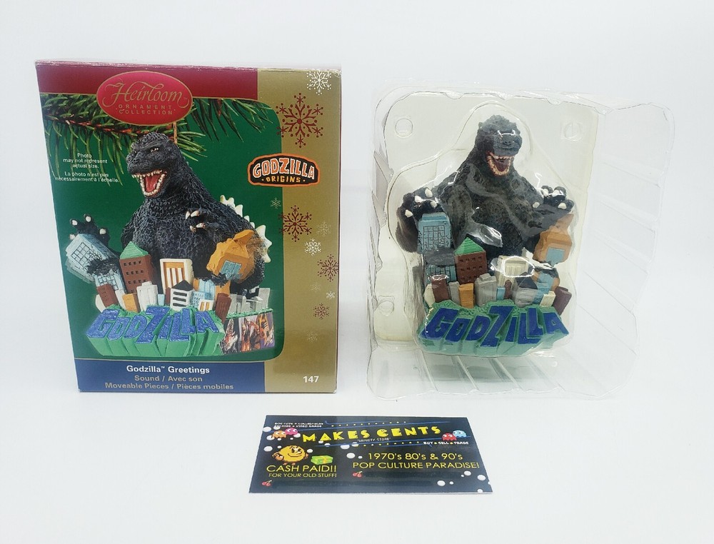 This listing is for - Godzilla Origins Greetings Carlton Heirloom Christmas Ornament Sound #147. In good condition overall. YES WE COMBINE SHIPPING! - BUY MORE SAVE MORE! You will receive the exact item as shown. Any questions please ask before bidding. Please look over all photo/photos for condition before bidding. All items are sold AS-IS. If you should encounter a defective or damaged item please reach out to us so we can assist you! Items ship in as fast as 1 business day. WE DO offer combined shipping on our listings. WE DO NOT offer partial refunds for any reason. See our Ebay Store for more awesome retro goods!!