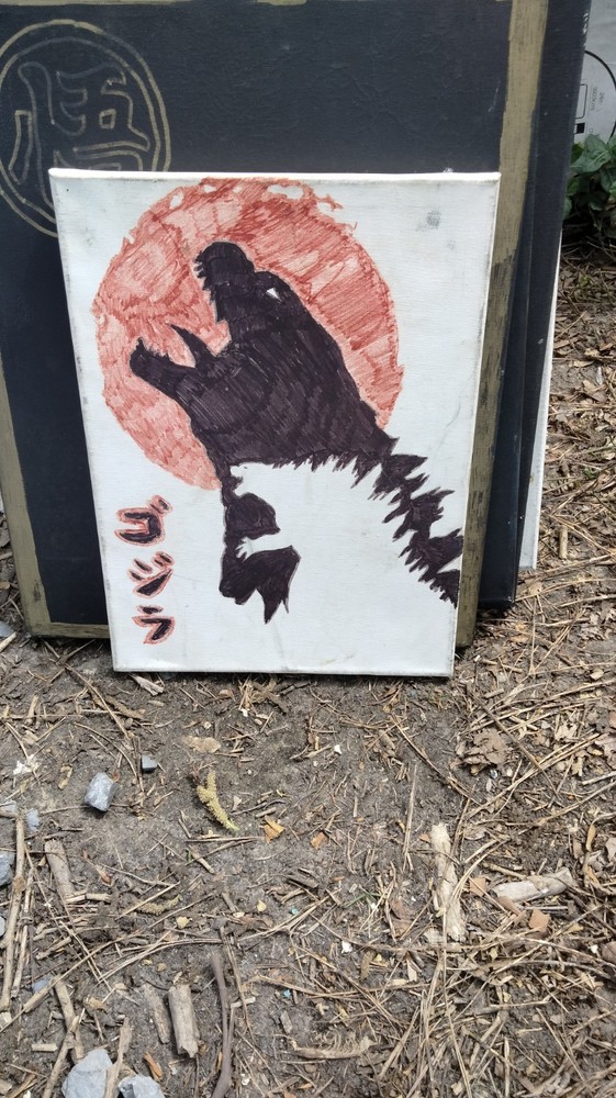This beautiful painting depicts the iconic monster, Godzilla, in all his glory. The artwork is a must-have for any fan of the creature and is sure to be a conversation starter in any room. The painting is expertly crafted and is the perfect addition to any art collection.