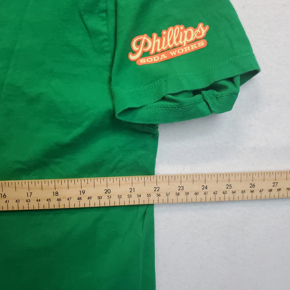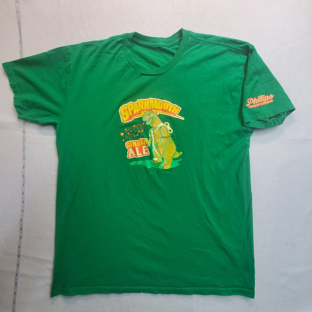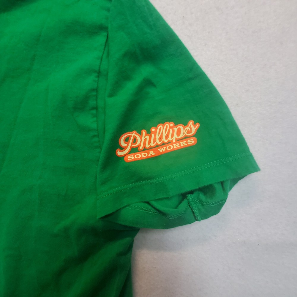 Crafted for comfort and style, the Phillips Soda Works Sparkmouth Ginger Ale Men's T-Shirt is a versatile addition to any wardrobe. Emblazoned with a playful and vibrant graphic print, this tee features a classic crew neck and short sleeves, making it ideal for all seasons. The shirt's knit cotton fabric ensures breathability and ease of care, being machine washable for your convenience. With its regular fit, this green-colored T-shirt caters to a variety of body types, offering a relaxed feel without compromising on style. Accented with the Phillips Soda Works logo, it brings a touch of brand personality to your casual attire. Whether you're out for a casual meet-up or just lounging at home, this tee is designed for those who appreciate a blend of fun and artistry in their everyday wear.