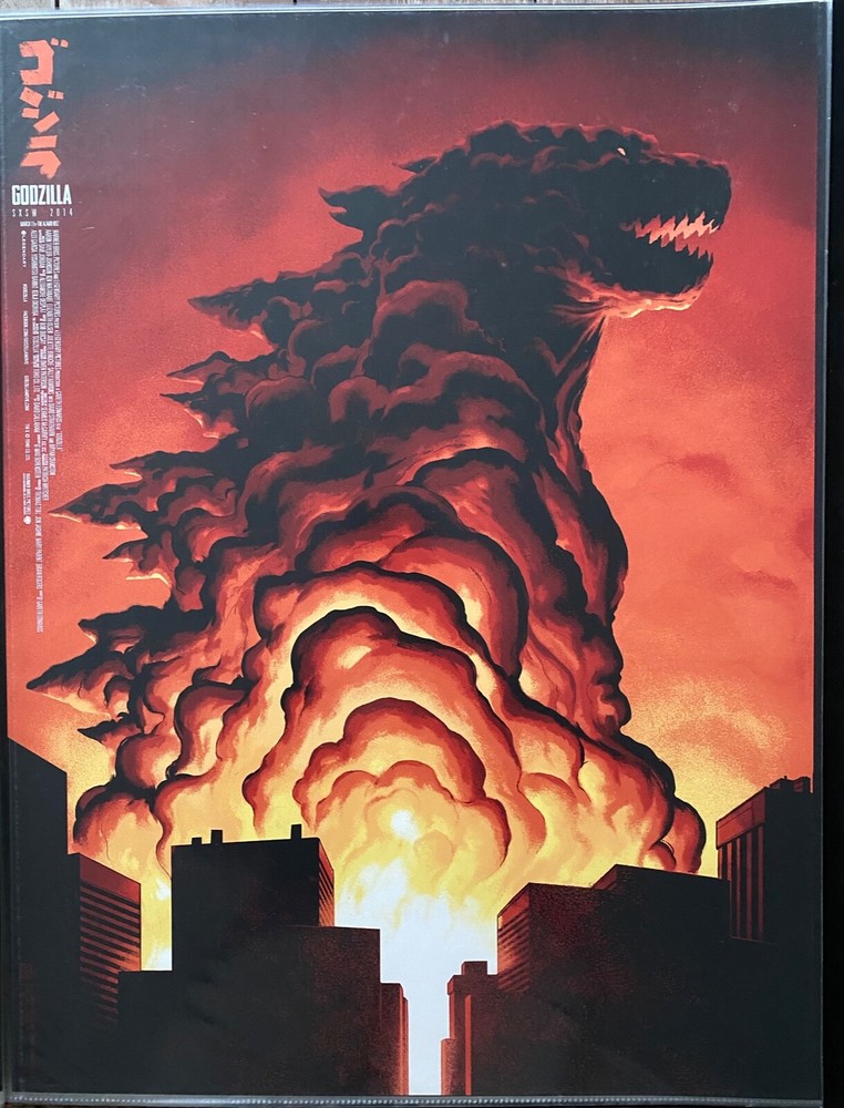 This is a one-of-a-kind Godzilla print by Phantom City Creative, perfect for any movie lover's art collection. Measuring 24" x 36", this stored flat print depicts the iconic Godzilla in stunning detail. The print is ideal for framing and displaying in your home or office. The artist's signature is prominently displayed on the print, making it a valuable addition to any art enthusiast's collection. The print is categorized under "Art Prints" and "Art" and is perfect for those interested in the theme of movies. Get your hands on this unique Godzilla print today!