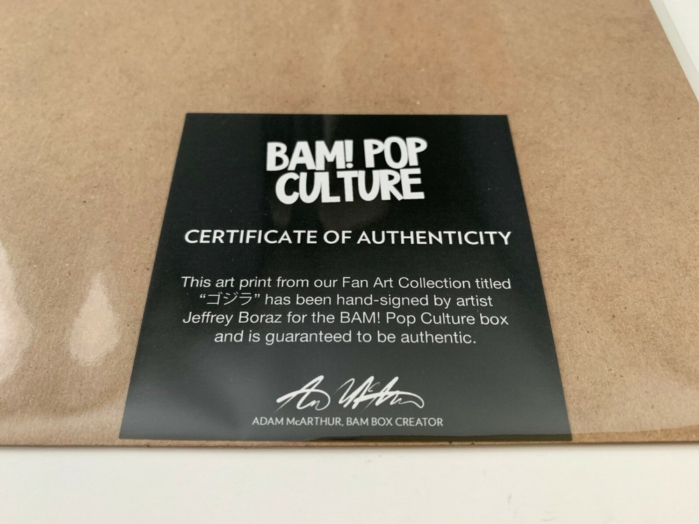 From the Bam Pop Culture Box - June 2019, is this exclusive hand-signed Godzilla art print by Jeffrey Boraz. The art print is numbered out of 5000 and comes with Certificate of Authenticity....