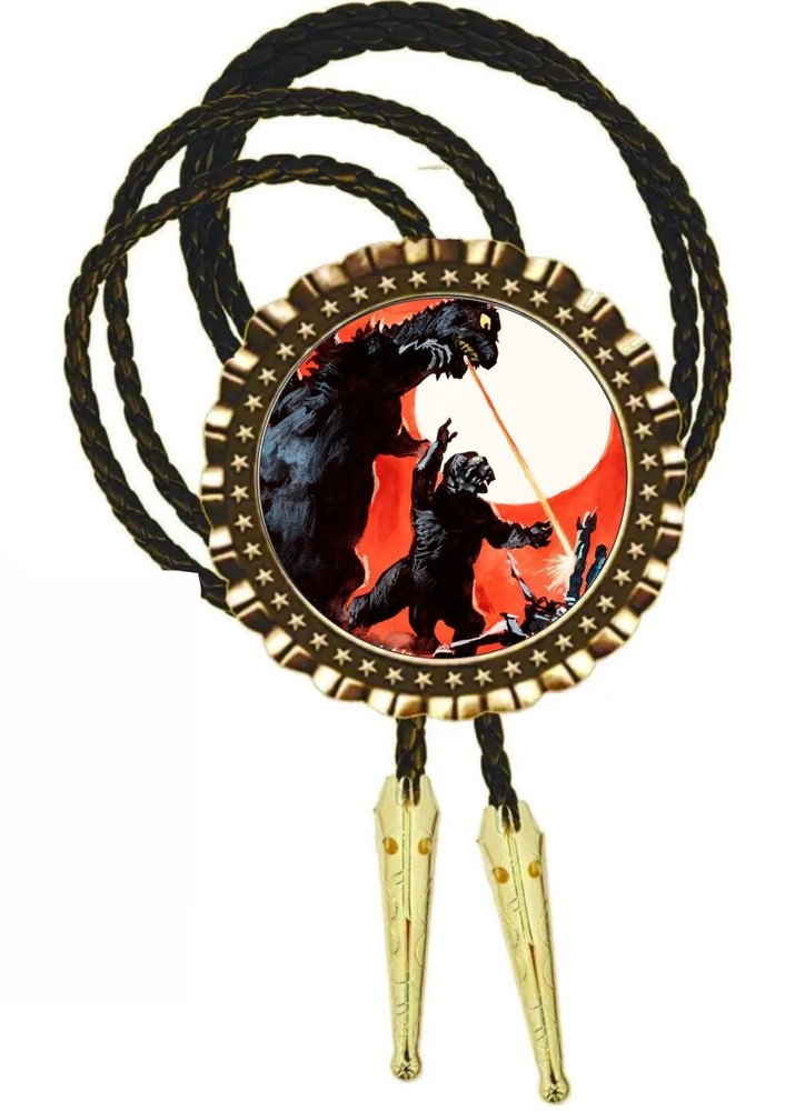Vintage Godzilla and Son Godzuki Bolo Tie Retro Photo Art Necktie Gift for Dad