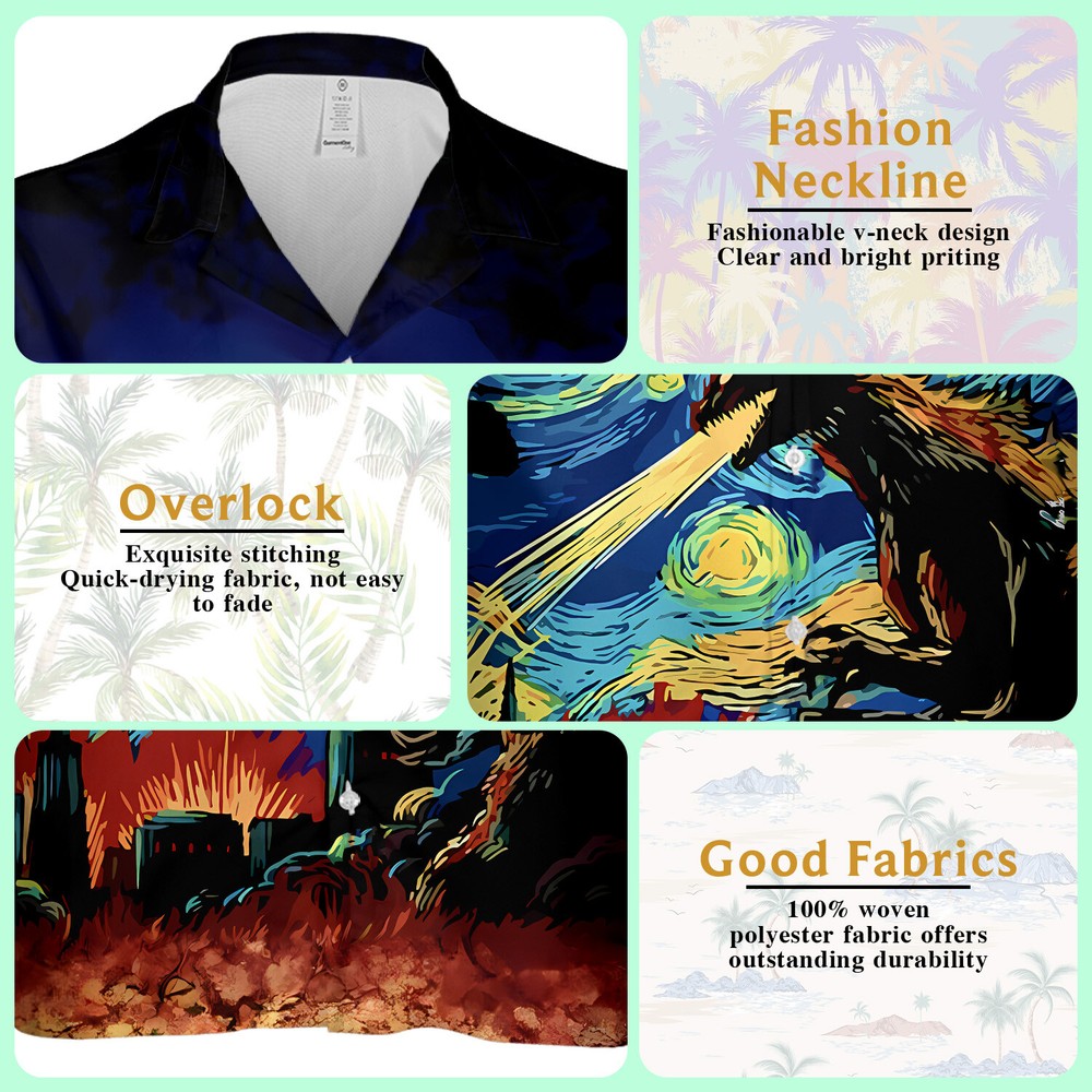 This Hawaiian shirt is an absolute dream to wear! The linen-spandex blend makes it super soft and breathable, perfect for staying cool in the heat. The Godzilla Starry Night design is a unique, eye-catching twist on Van Gogh—so fun and artistic. Lightweight yet durable, it feels luxurious without being bulky. Whether for a beach day or just lounging, this shirt is stylish and comfortable. A must-have for any Godzilla or art fan!