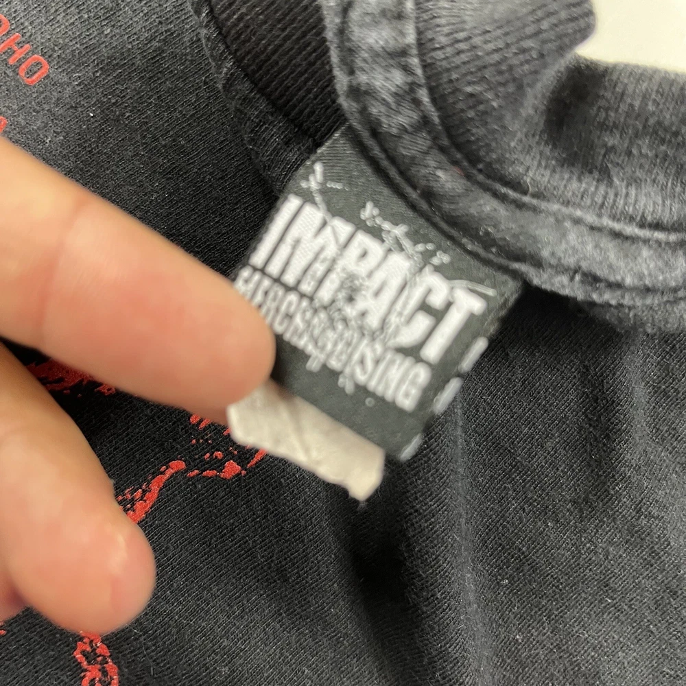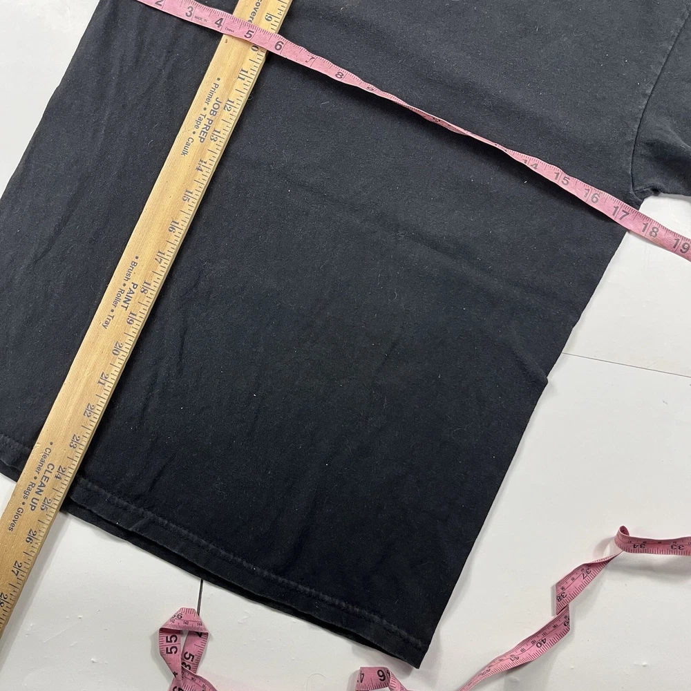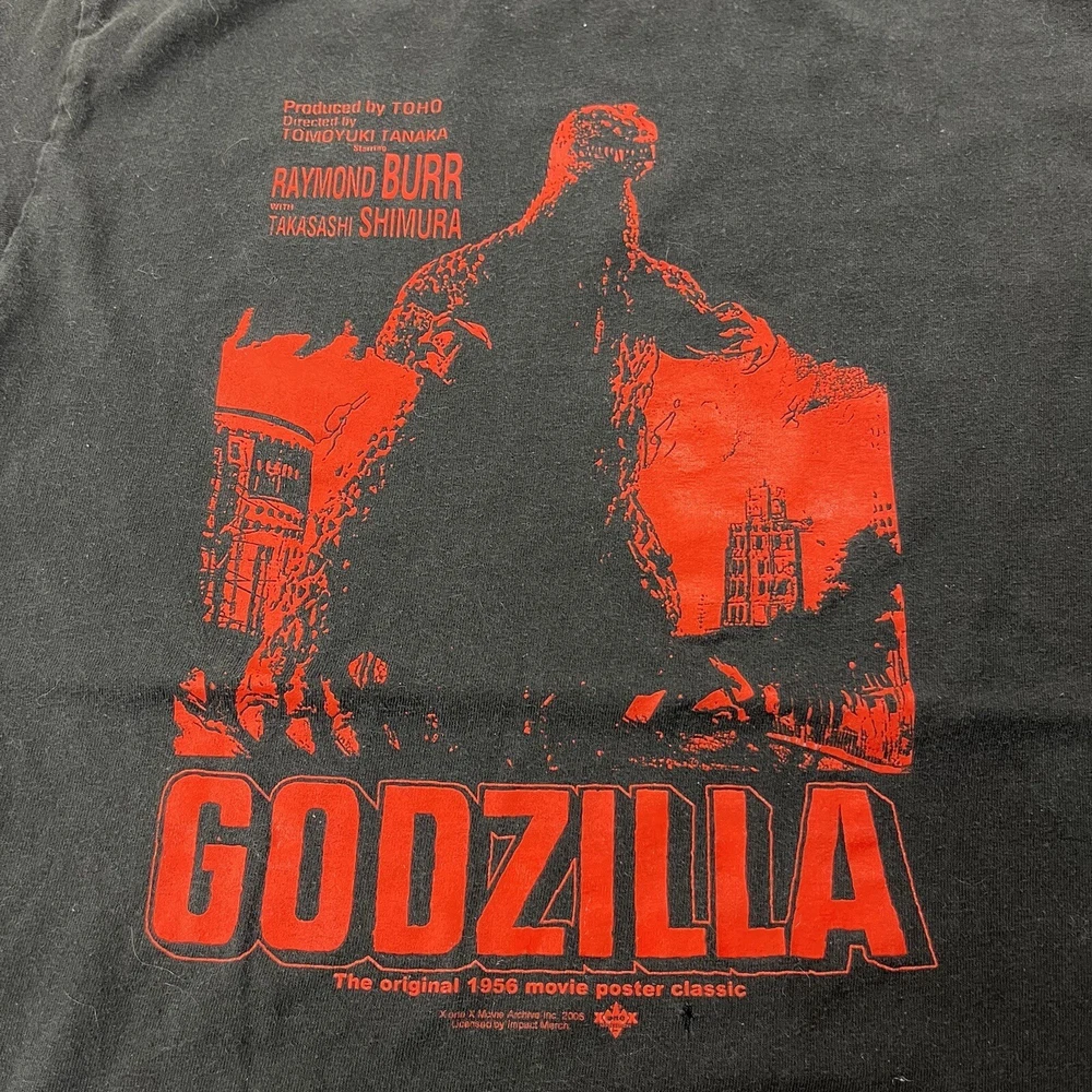 This black unisex graphic tee features the iconic Godzilla and other monsters from the 1956 Japanese sci-fi movie poster. Made from 100% cotton, it is preshrunk and heavyweight for easy care. The crew neck shirt has short sleeves and a solid pattern. It is machine washable and proudly made in Nicaragua. This Impact t-shirt comes in size small and fits regular. It is perfect for fans of nature, art, horror, cartoons, and cosplay. With its vintage theme and geeky design, it is a must-have for any Godzilla or Toho fan. Whether you're going for a retro or hipster look, this shirt is the perfect addition to your wardrobe.