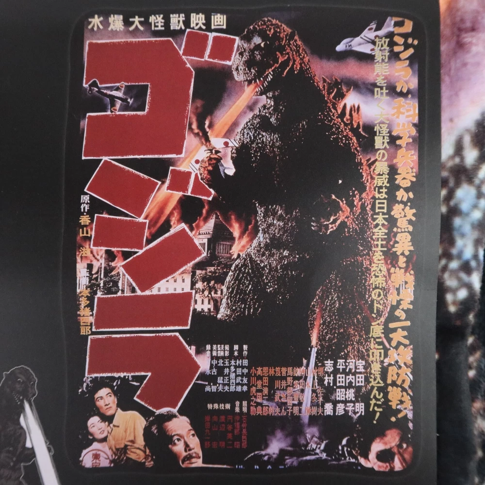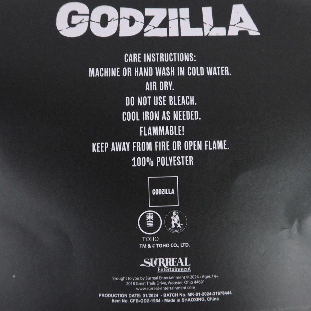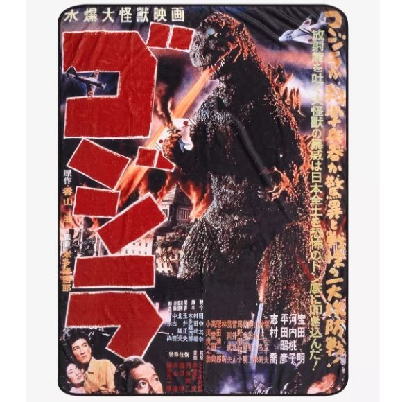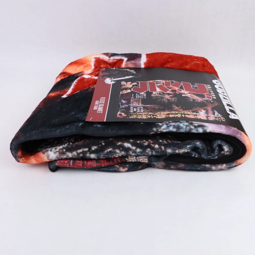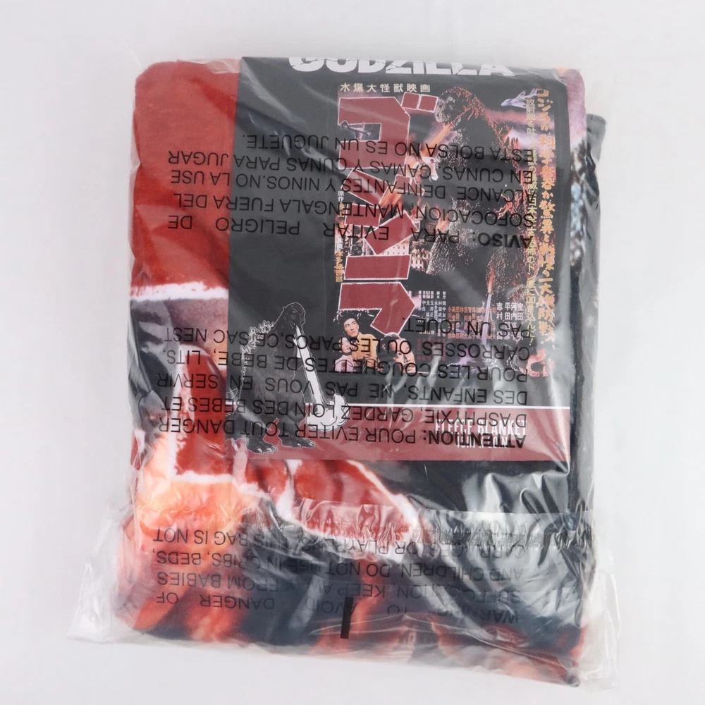 Godzilla Throw Blanket 1954 Movie Poster 45x60in Kaiju Monster Japanese Wall Art Cuddle up to watch your favorite kaiju wreak havoc again! This throw blanket features a retro Japanese poster print of the classic 1954 Godzilla film. 45" x 60" 100% polyester Wash cold; dry low