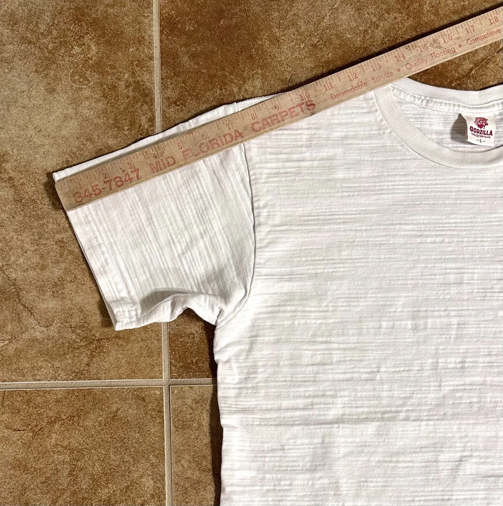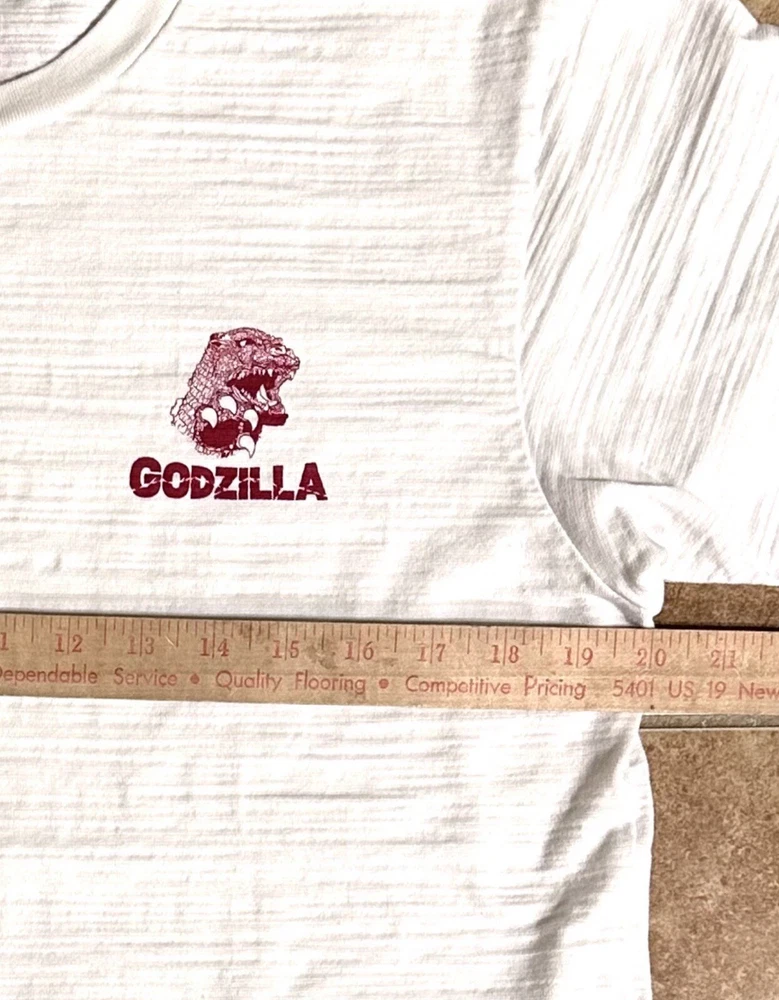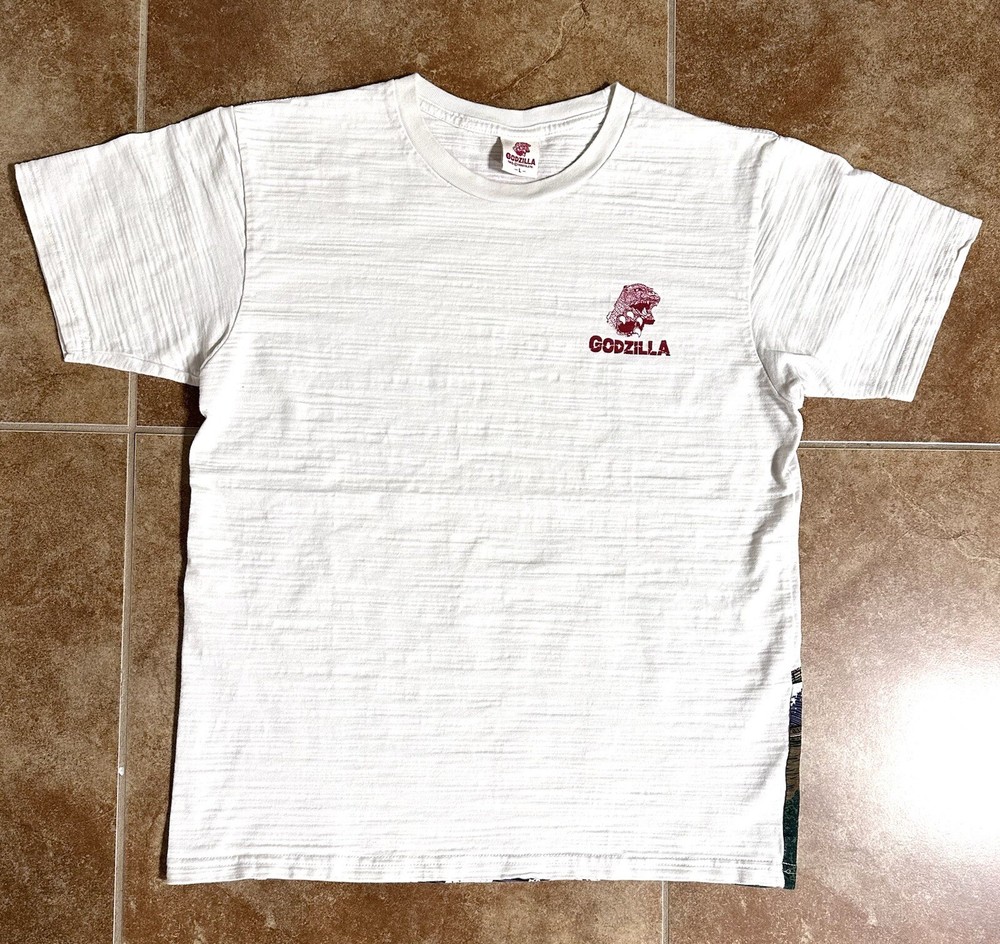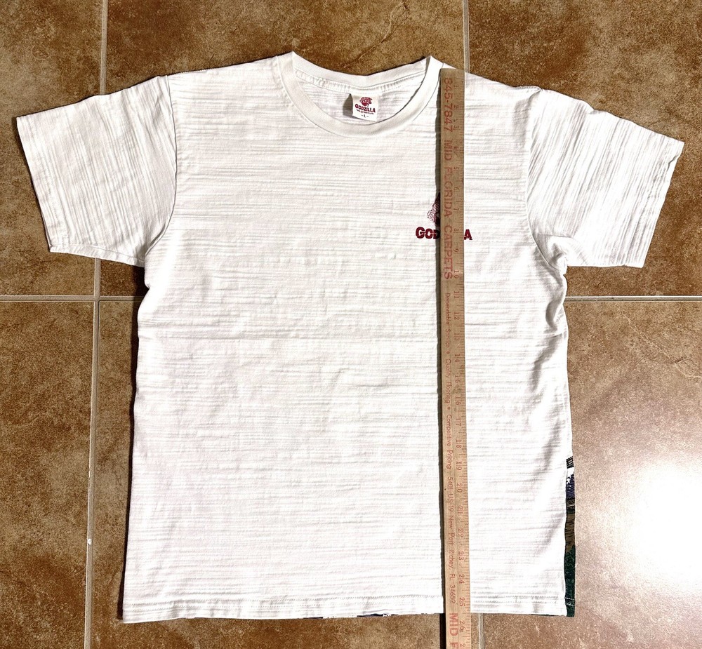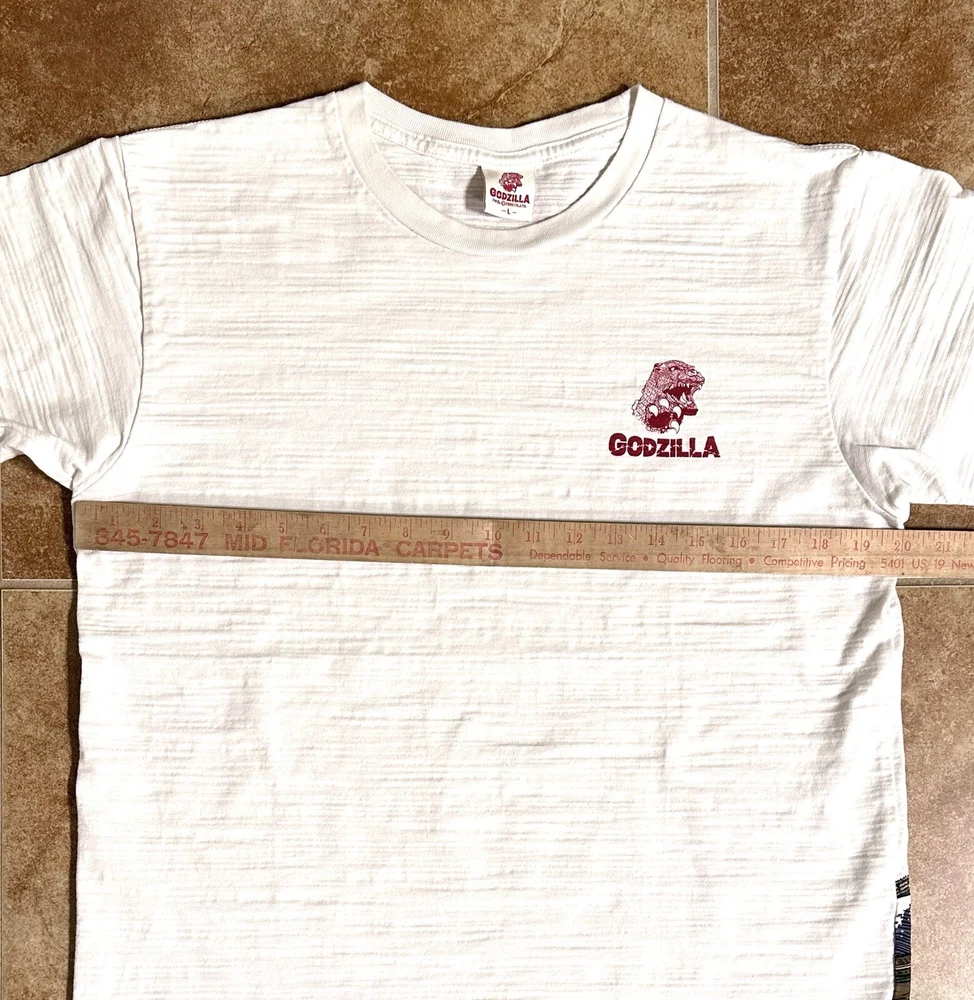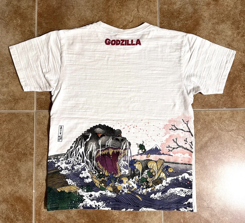 Preowned: Godzilla - Toho - White Crewneck Short Sleeve T-Shirt - Japanese Art Cherry Blossom - Mt. Fuji Hokusai - Size Large in good and washed clean condition. PLEASE see all photos for more details and measurements, thank you! *At times the items photographed may appear lighter or darker in color than the actual item itself depending on lighting and monitor display. Some item colors tend to distort at close-up when photographed. I do my very best to describe my items to the best of my abilities, thank you! For seller: 103295SAP